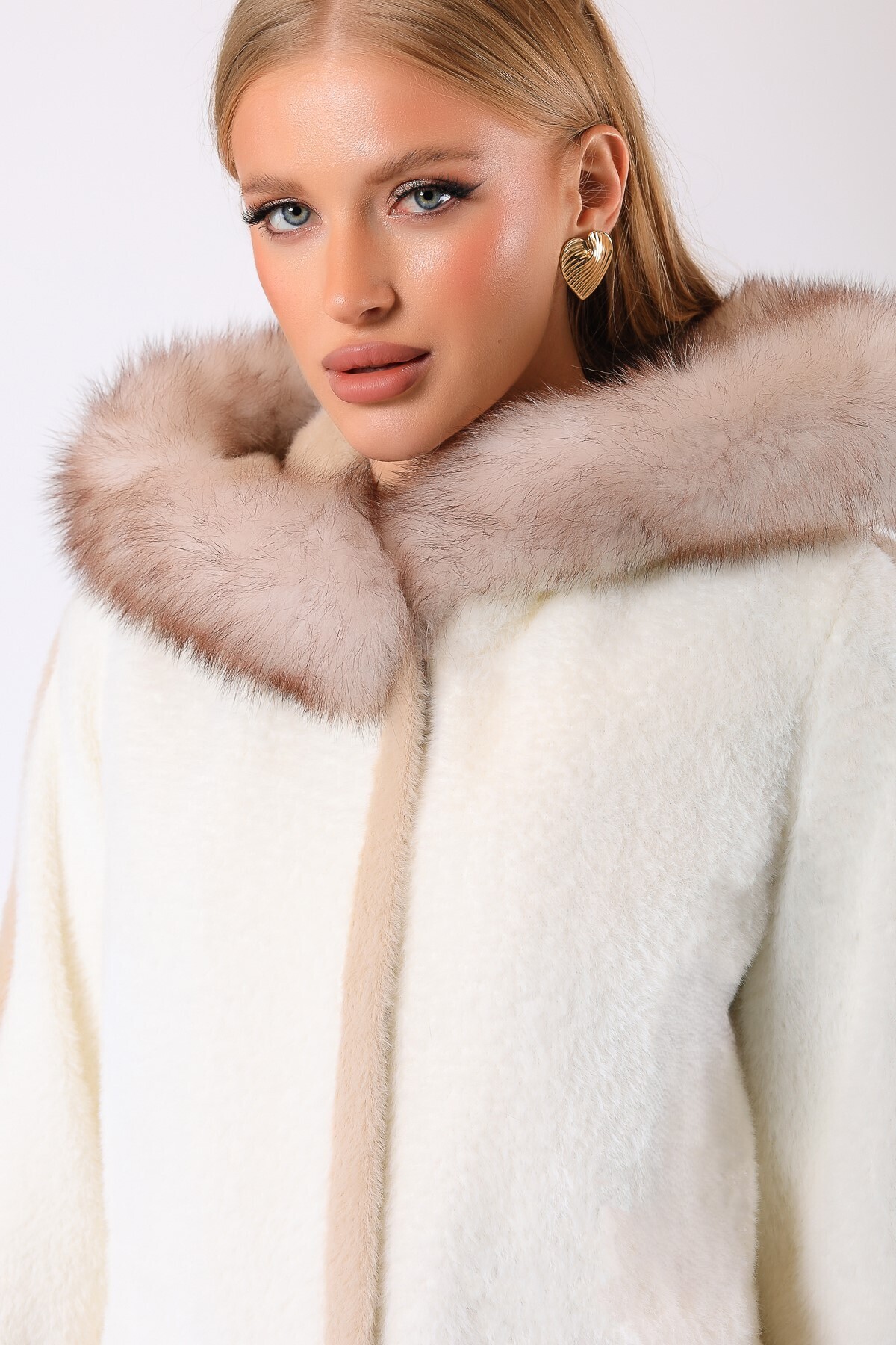 Beyaz Maria Kürk Aksesuarlı Yün Kaban Beyaz Maria Kürk Aksesuarlı Yün Kaban BS-6082 2XL
