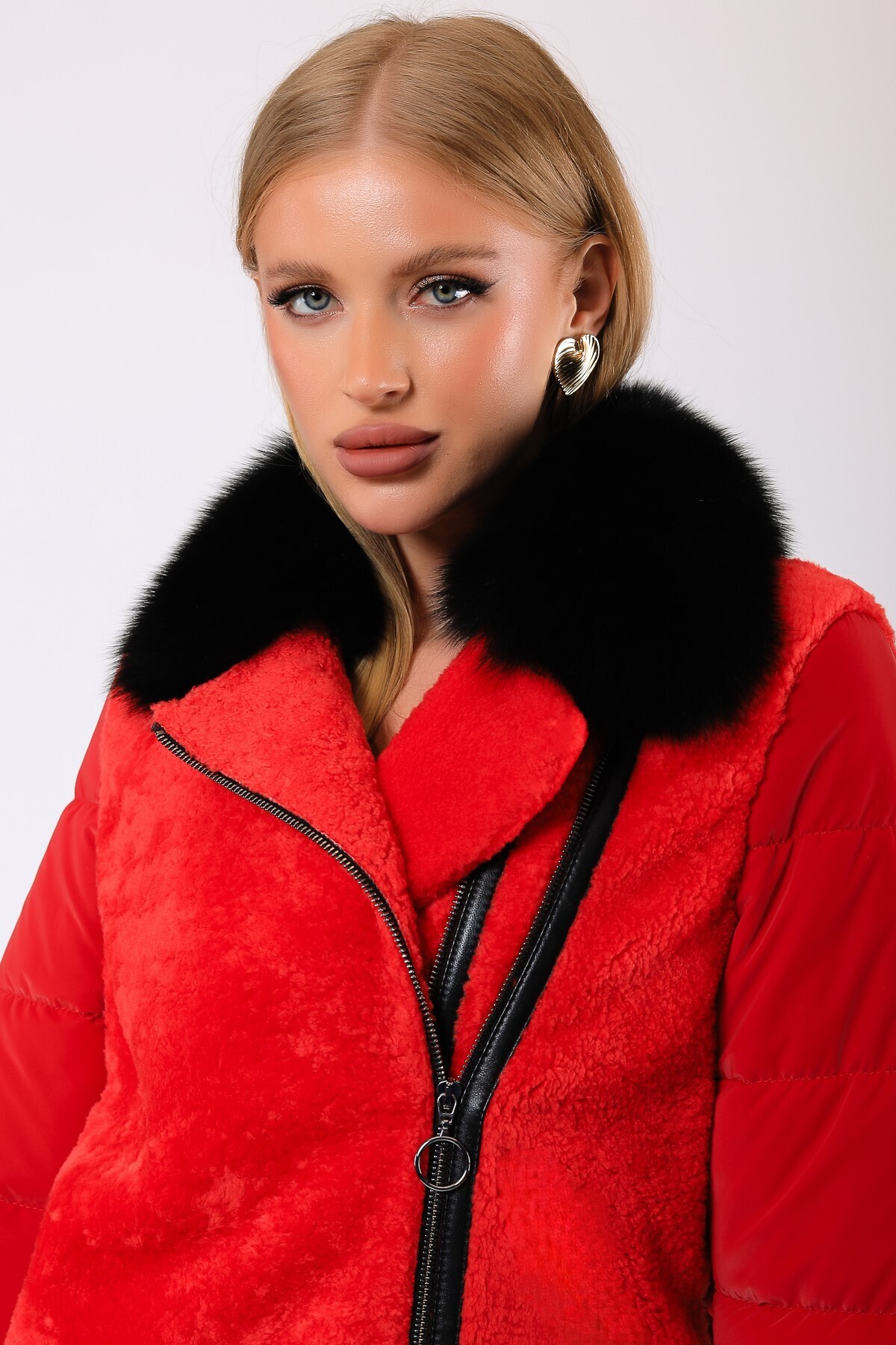 Kırmızı Vanessa Kürk Aksesuarlı Yün Puffer Kaban Kırmızı Vanessa Kürk Aksesuarlı Yün Puffer Kaban BS-6090-2 2XL