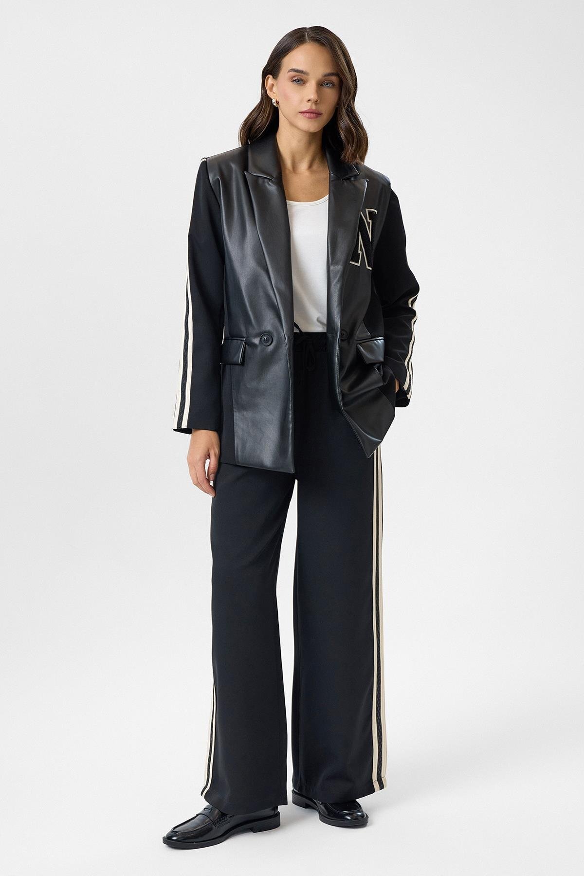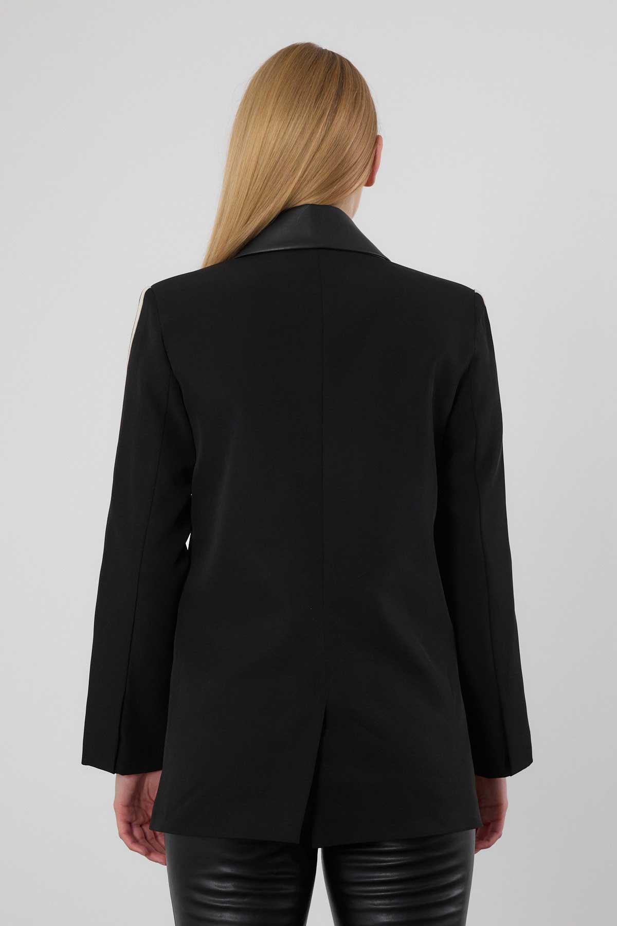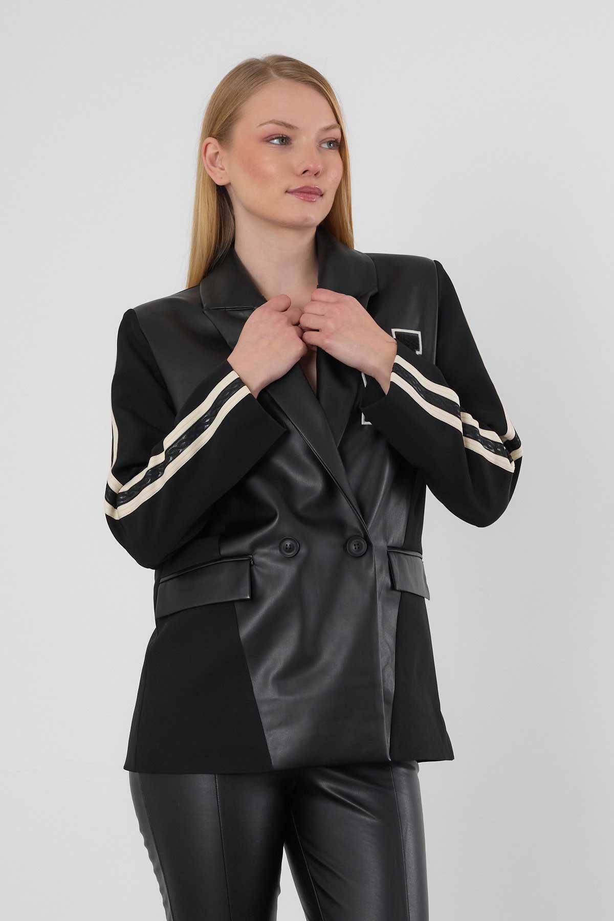 1932 Kolları Şeritli Deri Garnili Atlas Ceket Siyah 1932 Kolları Şeritli Deri Garnili Atlas Ceket Siyah 25KASDIS00001 XL
