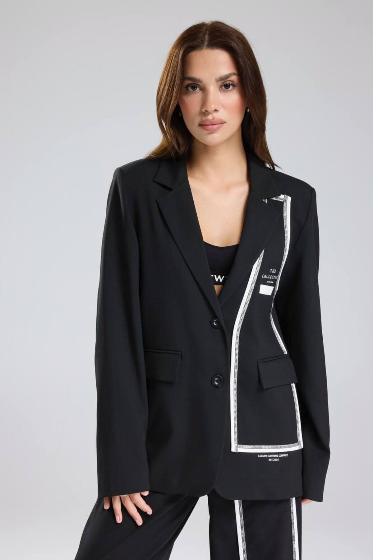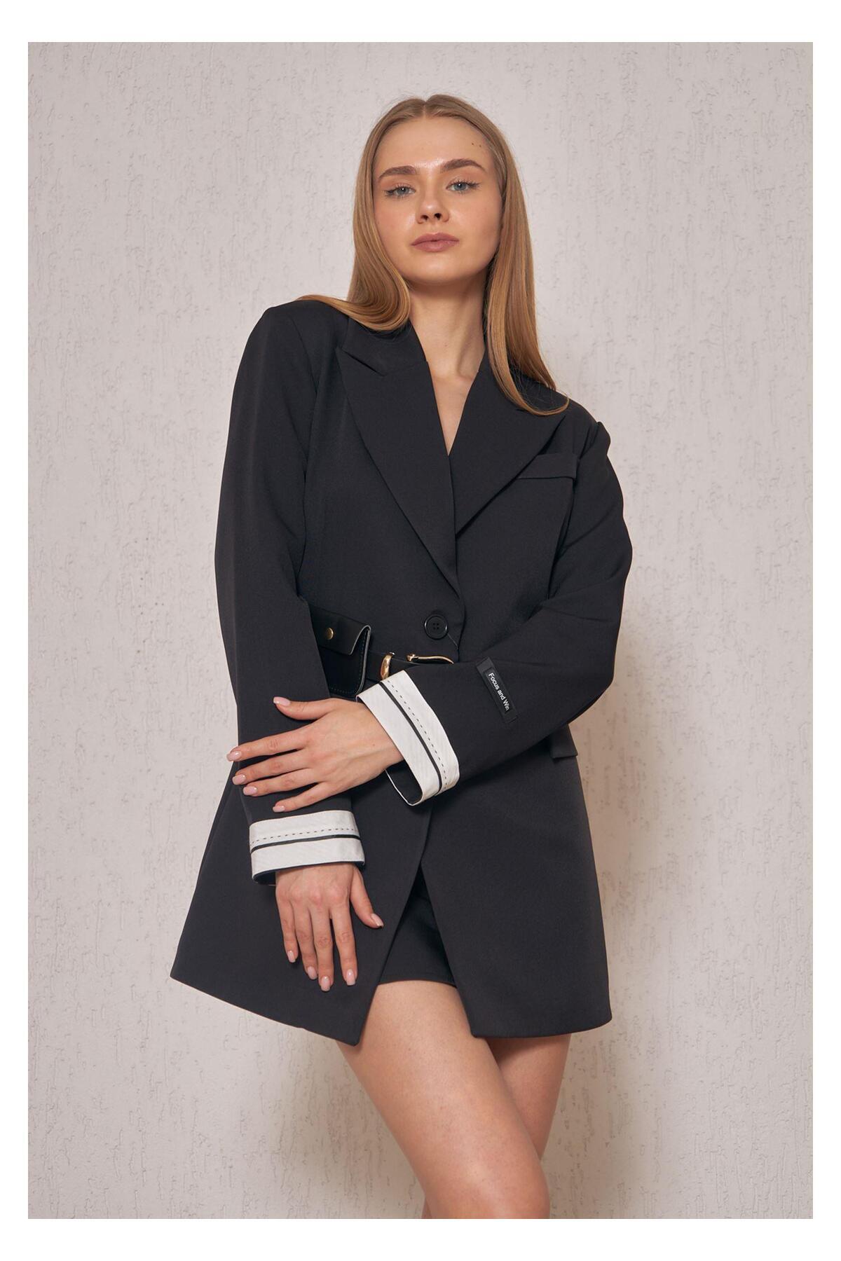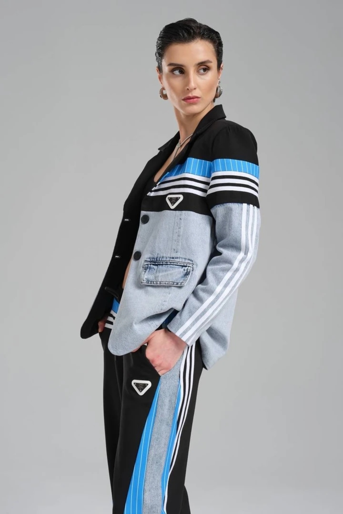 1932 Kolları Şeritli Deri Garnili Atlas Ceket Siyah 1932 Kolları Şeritli Deri Garnili Atlas Ceket Siyah 25KASDIS00001 XL