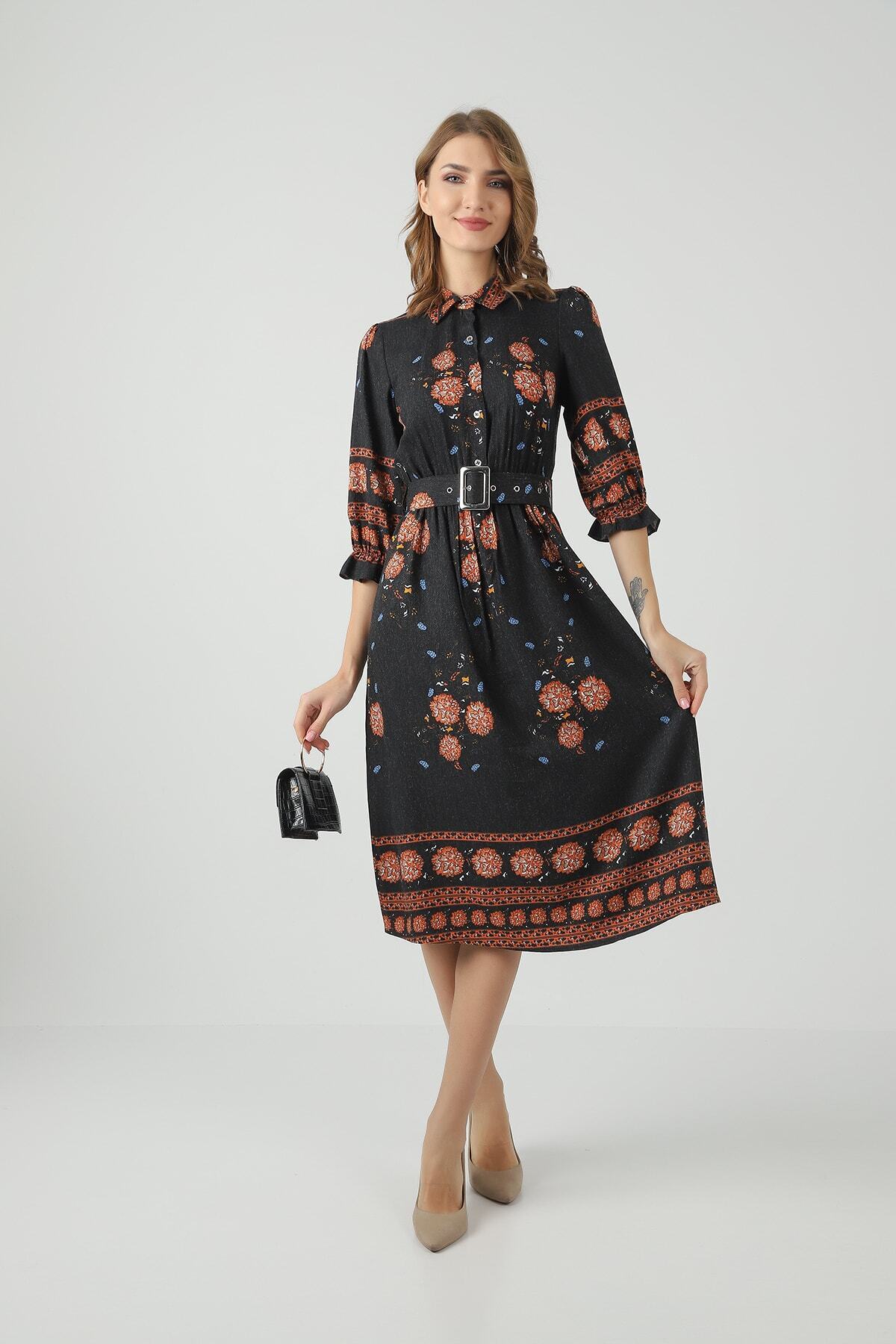 Kadın Denim Detaylı Kuşaklı Uzun Gömlek Elbise 8195 60351348 Kadın Denim Detaylı Kuşaklı Uzun Gömlek Elbise 8195 60351348 L