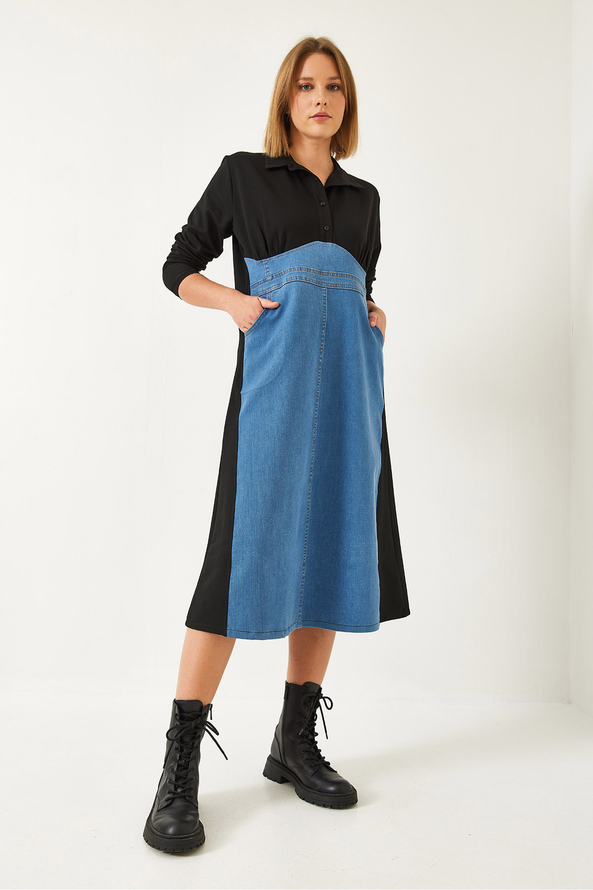 Kadın Gömlek Yaka Denimli Uzun Elbise 8132 60351357 Kadın Gömlek Yaka Denimli Uzun Elbise 8132 60351357 L