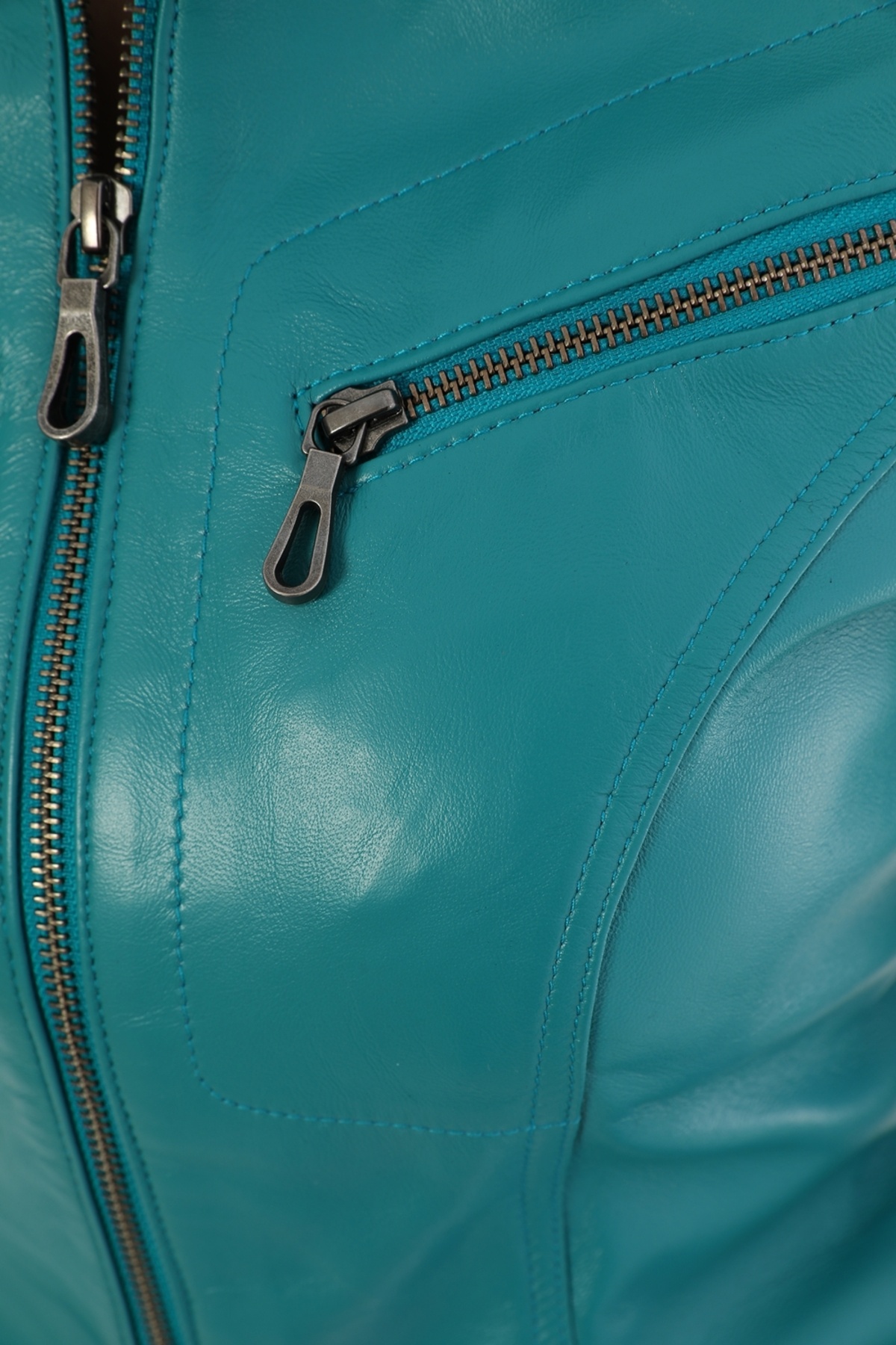 Kadın Fermuar Detaylı Turkuaz Hakiki Deri Ceket - B16 Kadın Fermuar Detaylı Turkuaz Hakiki Deri Ceket - B16 2XL