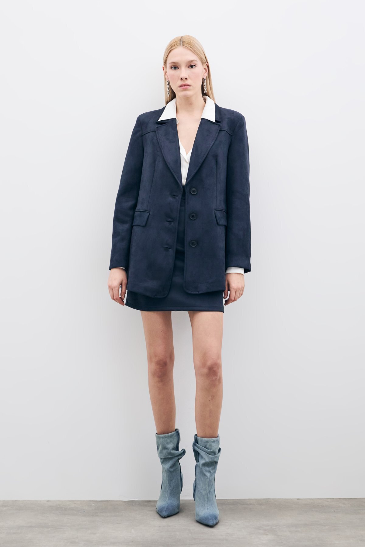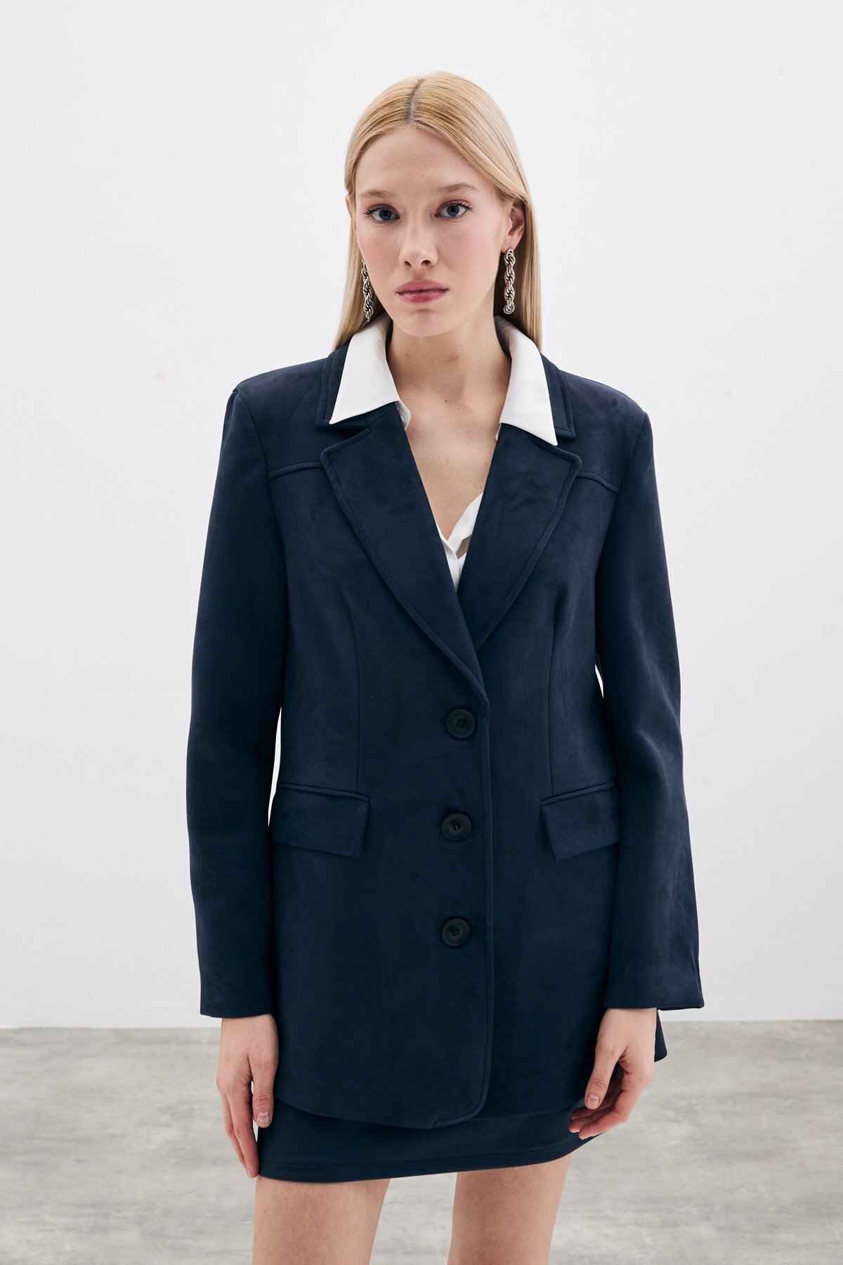 Düğmeli Süet Ceket - Lacivert Düğmeli Süet Ceket - Lacivert STN139KCE1635 42