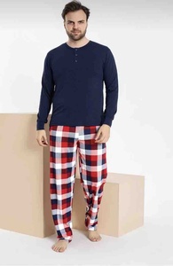 ALT EKOSELİ ÜST DÜZ RENK YAKA DÜĞMELİ ERKEK UZUN KOL PİJAMA TAKIMI ALT EKOSELİ ÜST DÜZ RENK YAKA DÜĞMELİ ERKEK UZUN KOL PİJAMA TAKIMI 3284 XL