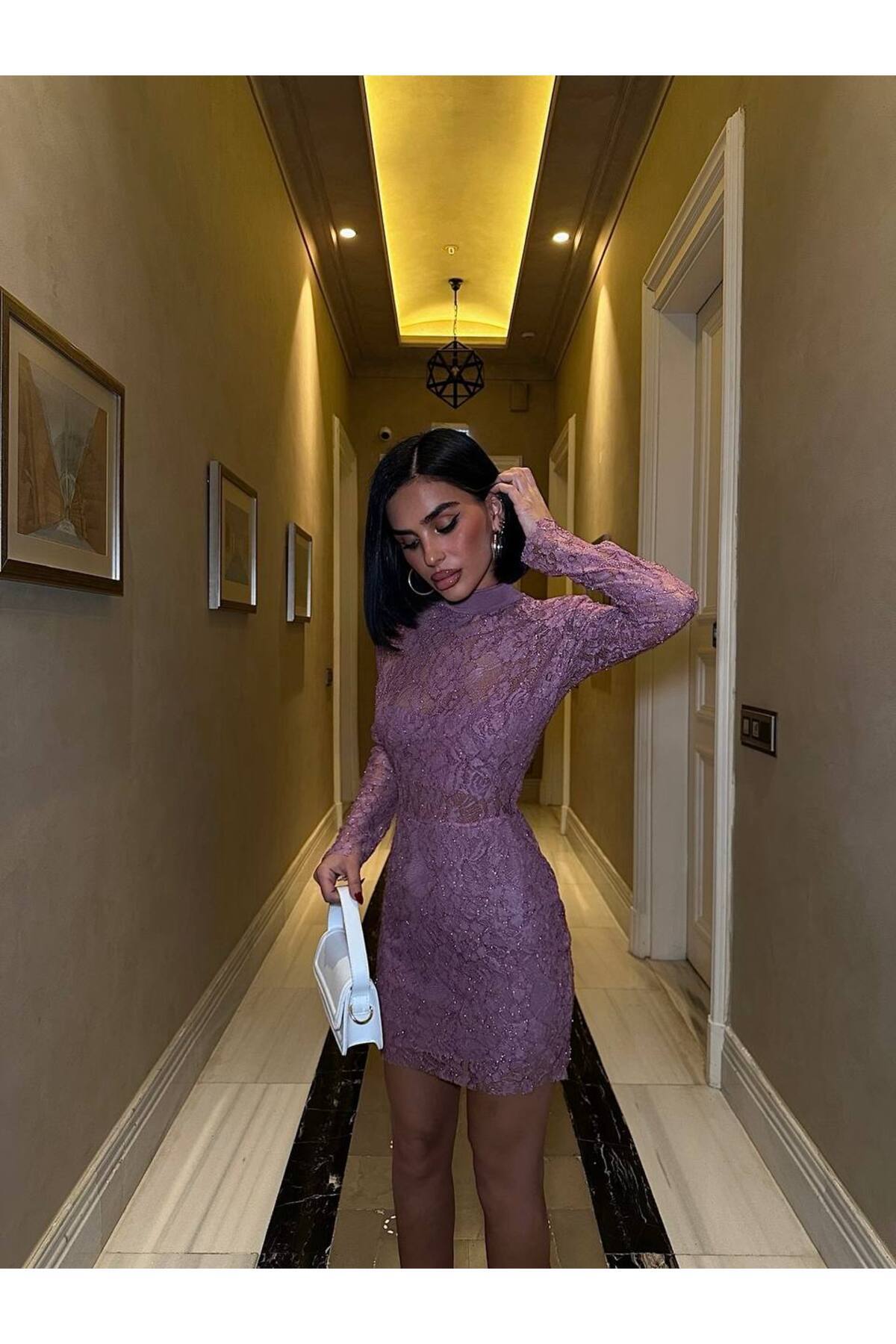 Kadın Simli Kumaş Astarlı Dantelli Transparan Mini Elbise Kadın Simli Kumaş Astarlı Dantelli Transparan Mini Elbise EDAN0TRA L