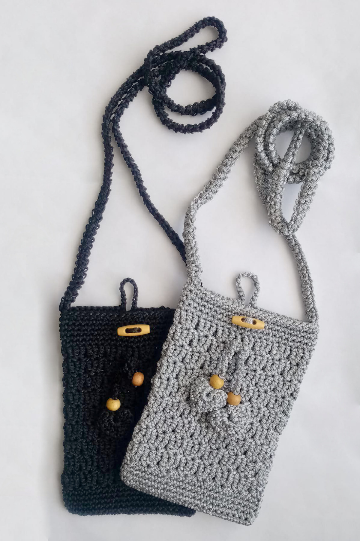 Makrome Telefon Çantası /El Örgüsü El Yapımı Ahşap Düğme ve Boncuk Detaylı Örme Cüzdan, Omuz Çantası Makrome Telefon Çantası /El Örgüsü El Yapımı Ahşap Düğme ve Boncuk Detaylı Örme Cüzdan, Omuz Çantası KADBECA15 Standart