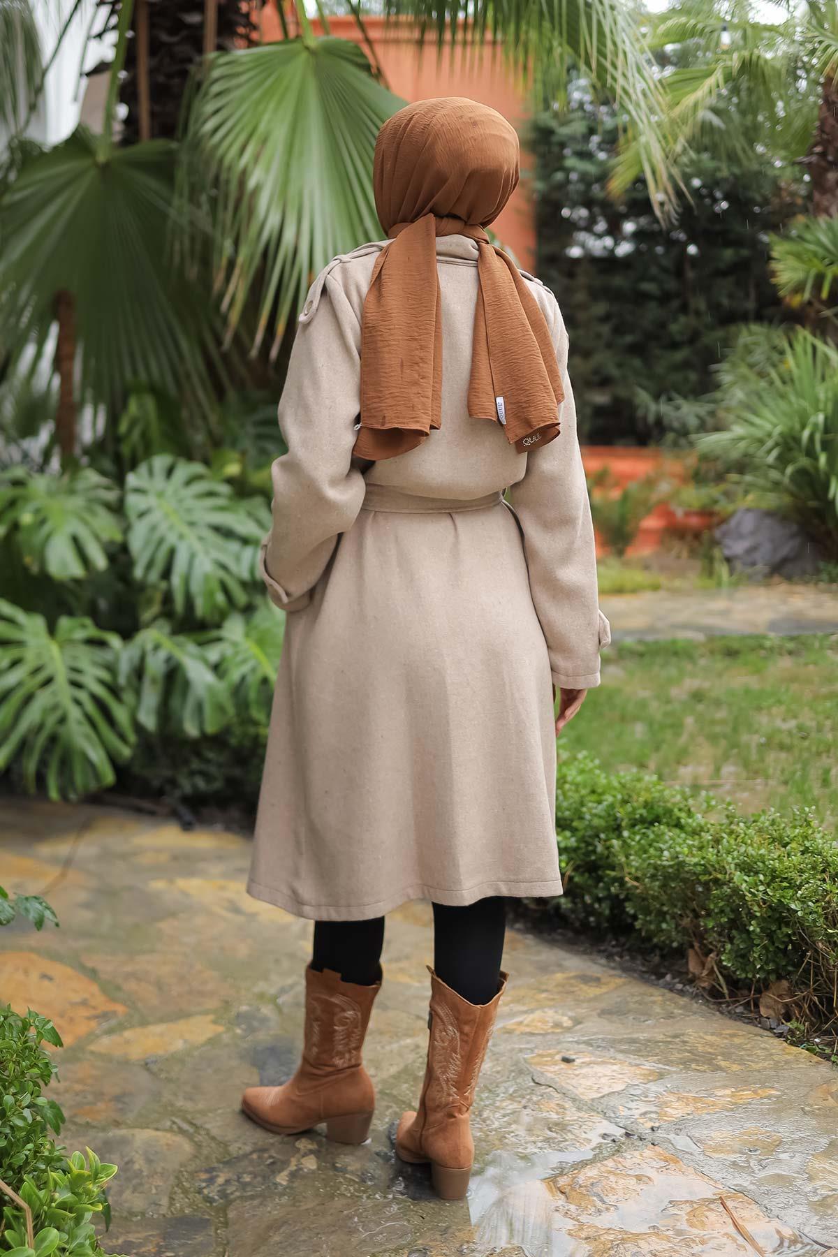 Apolet Detaylı Kaşe Kaban Vizon Apolet Detaylı Kaşe Kaban Vizon 4438 48