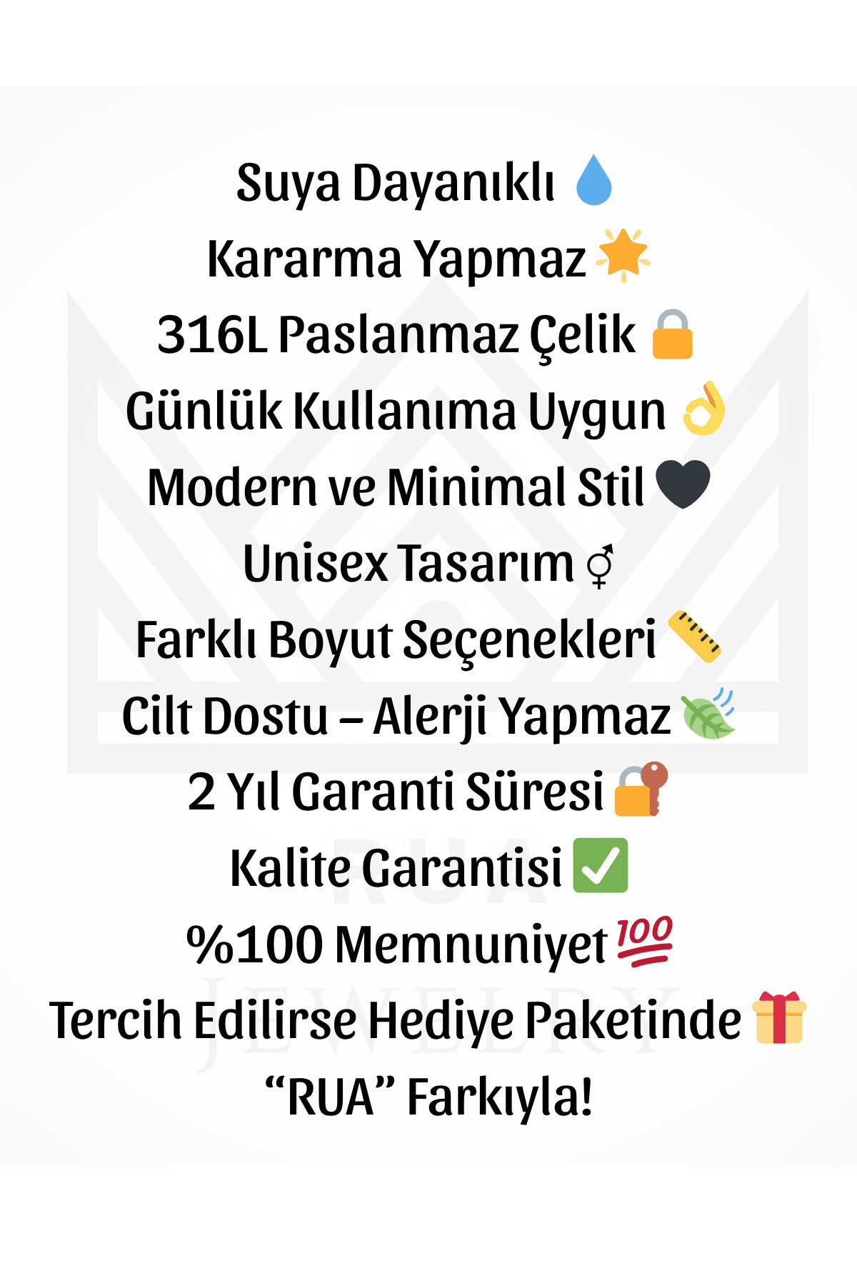 - Materyal Bileşeni : 316% L Çelik