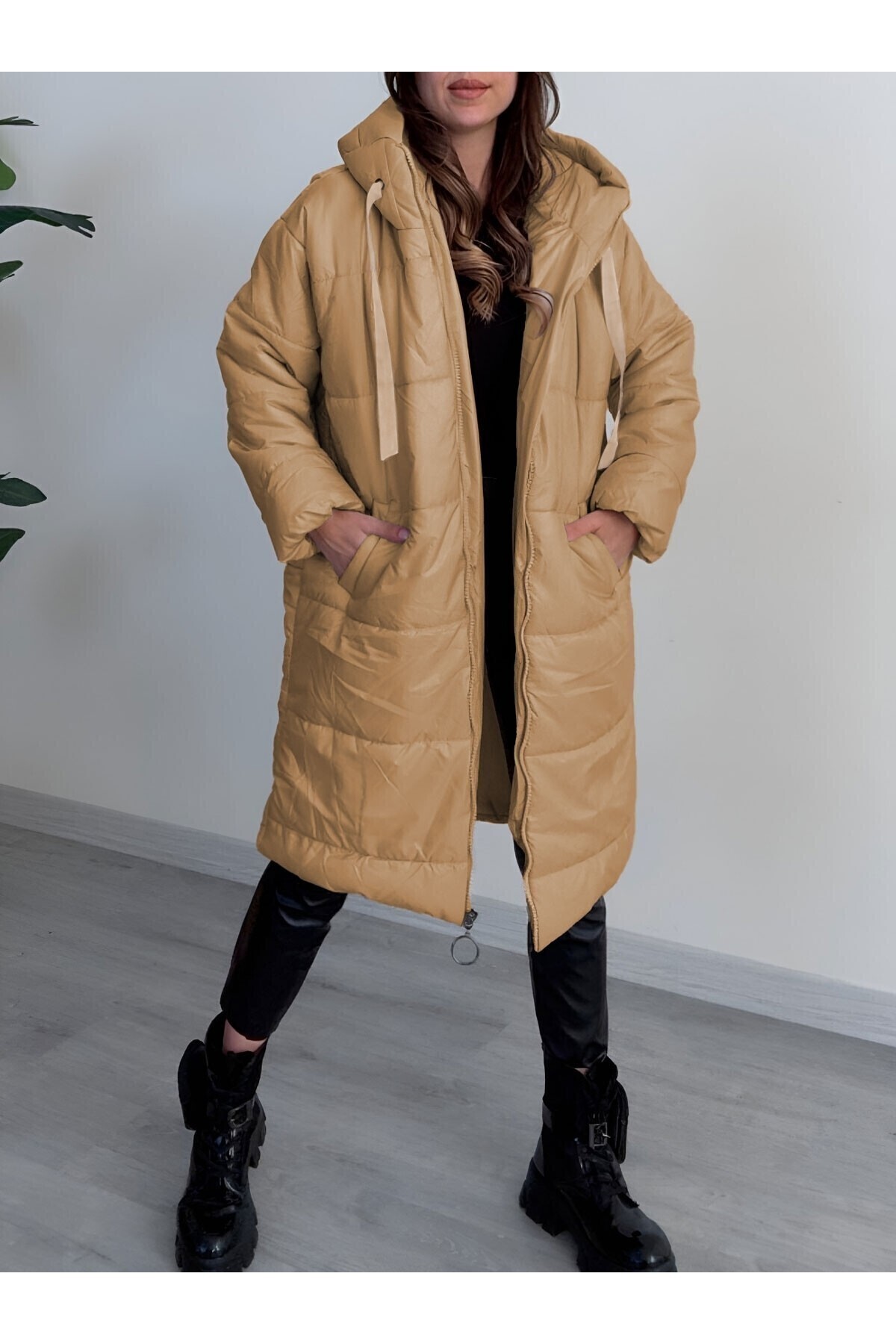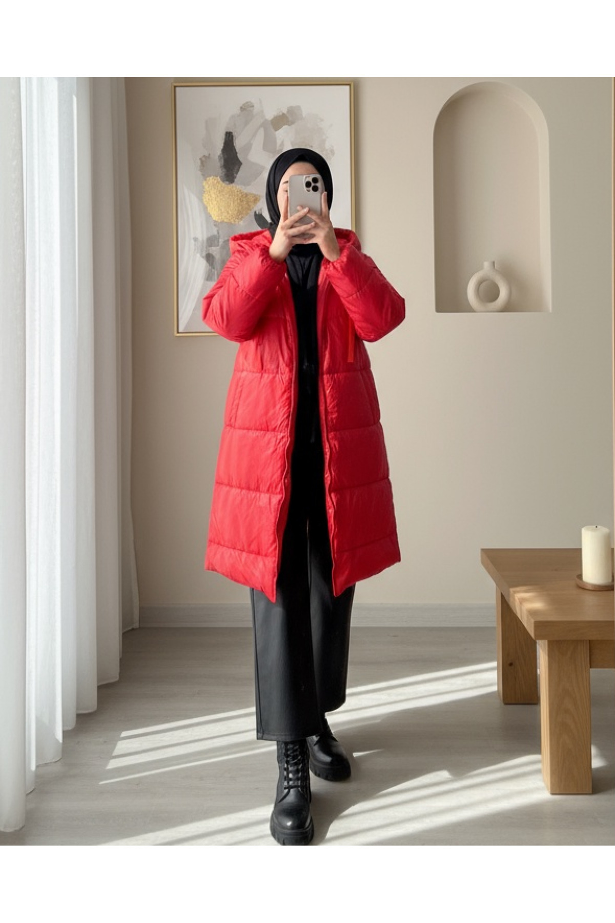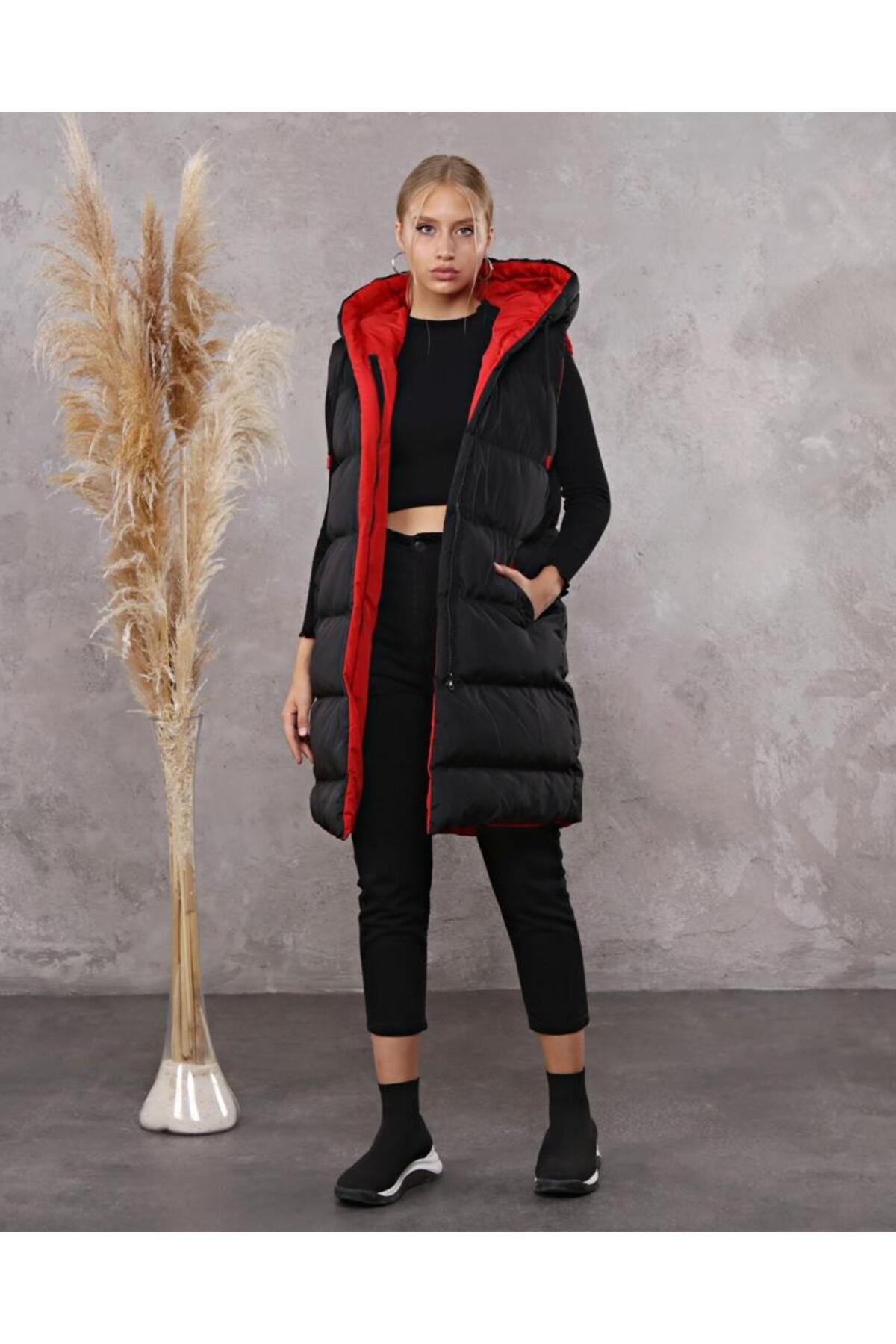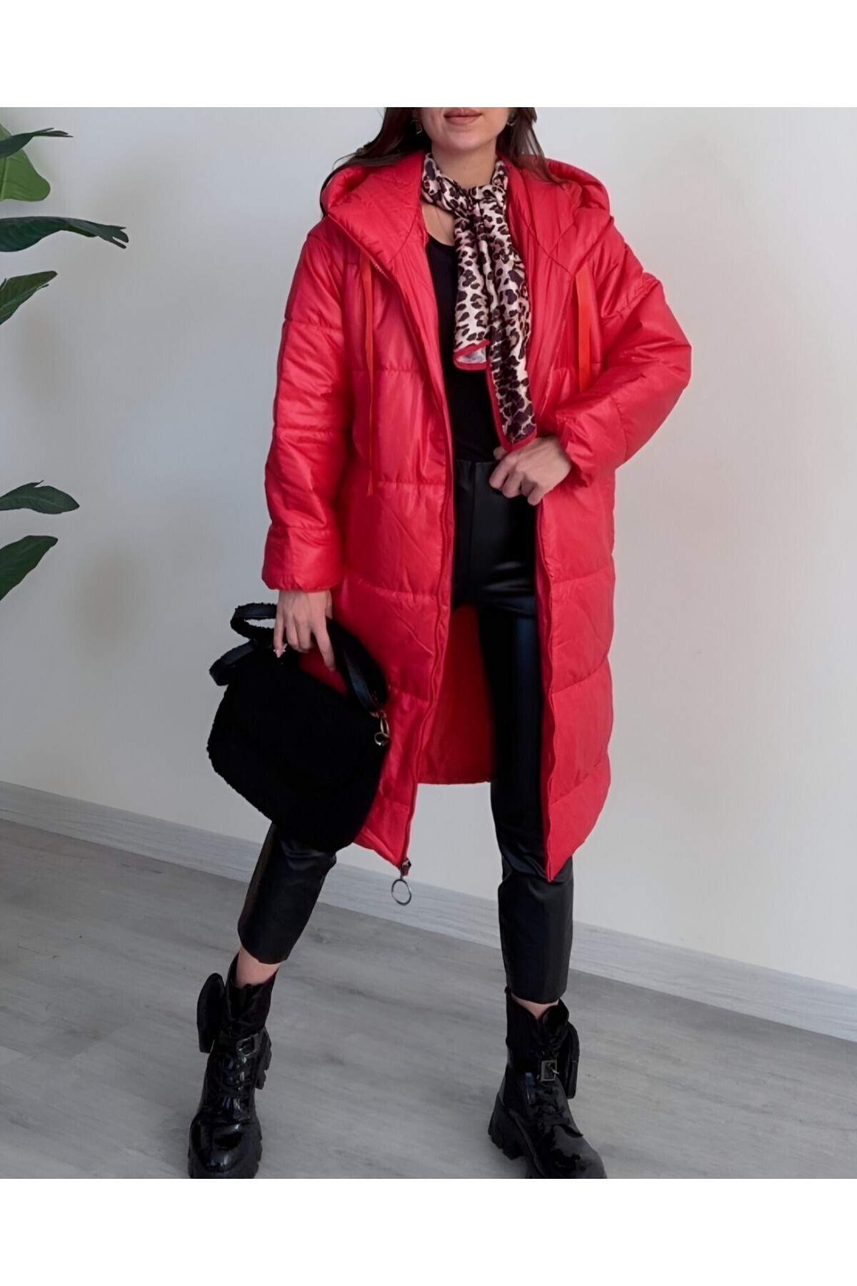 Kapşonlu Bağcık Detaylı Fermuarlı Şişme Mont -Kırmızı Kapşonlu Bağcık Detaylı Fermuarlı Şişme Mont -Kırmızı TY246-8234 42