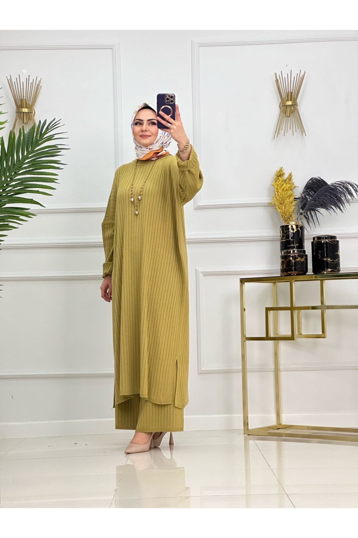 Uzun Tunik ve Pantolonlu İkili Tesettür Takım Çağla Uzun Tunik ve Pantolonlu İkili Tesettür Takım Çağla 110213428410 تک سایز