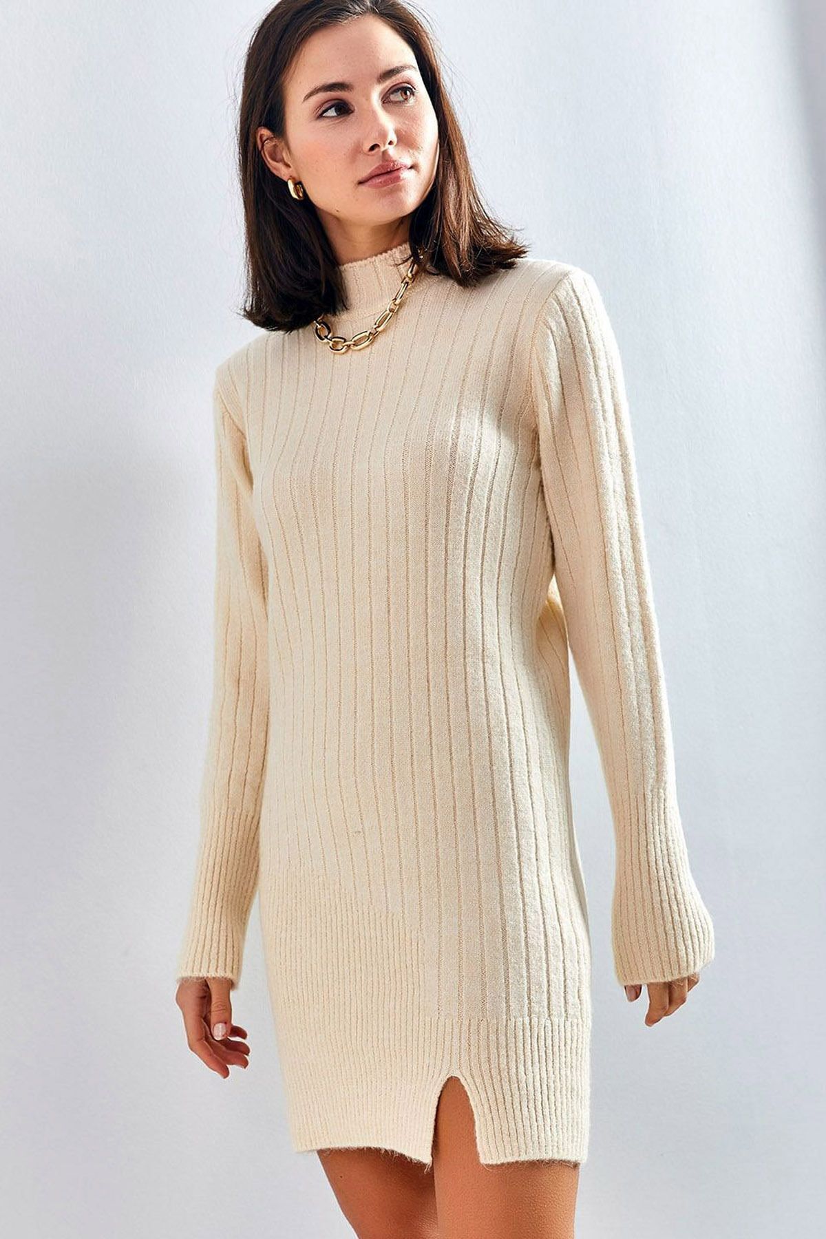 FERMUARLI DİK YAKA MİNİ TRİKO ELBİSE FERMUARLI DİK YAKA MİNİ TRİKO ELBİSE MNGDRD L