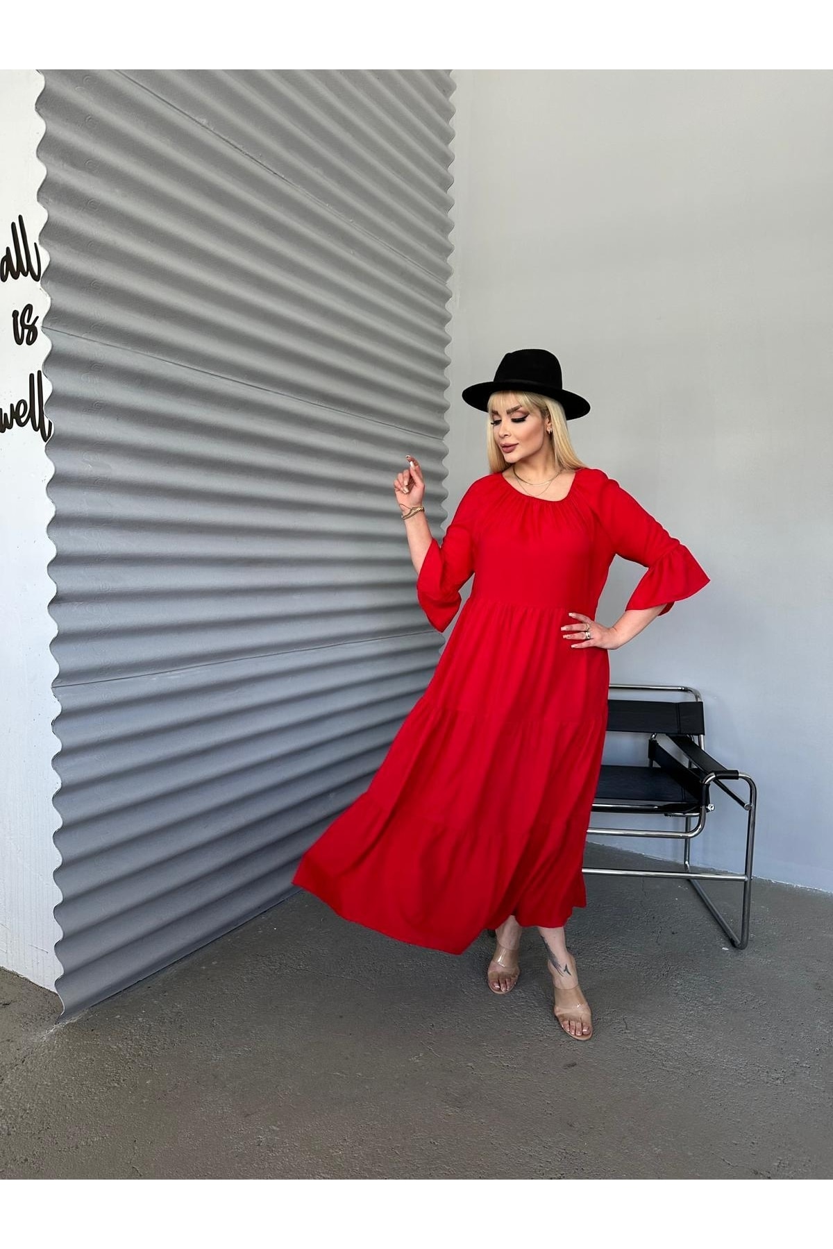 Büyük Beden Etek Ucu Fırfırlı Şifon Elbise Büyük Beden Etek Ucu Fırfırlı Şifon Elbise SHQ-70528 50
