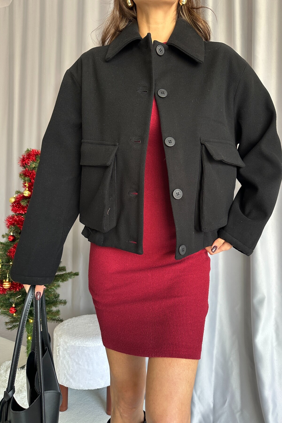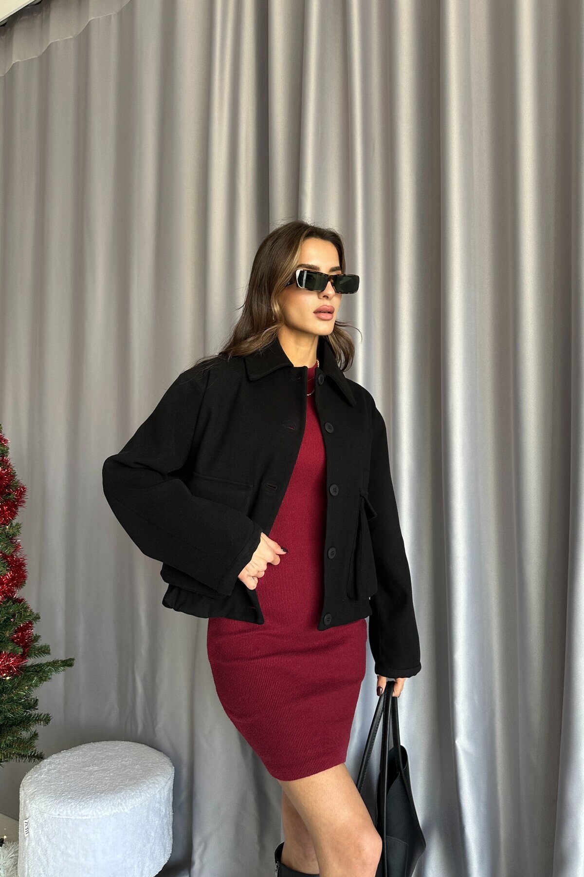 Kadın Siyah Beli Lastikli Astarlı Oversize Kaşe Ceket Kadın Siyah Beli Lastikli Astarlı Oversize Kaşe Ceket AKNCO601 XL