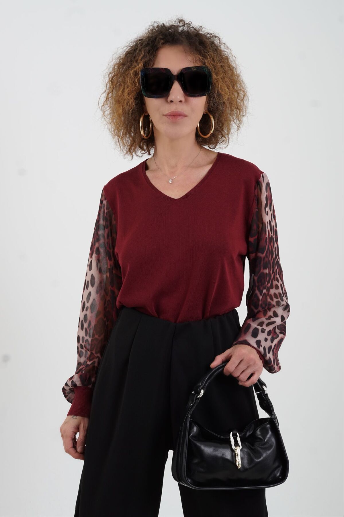 Kadın Leopar Desenli Bisiklet Yaka Kazak Kadın Leopar Desenli Bisiklet Yaka Kazak leopar9 Standart