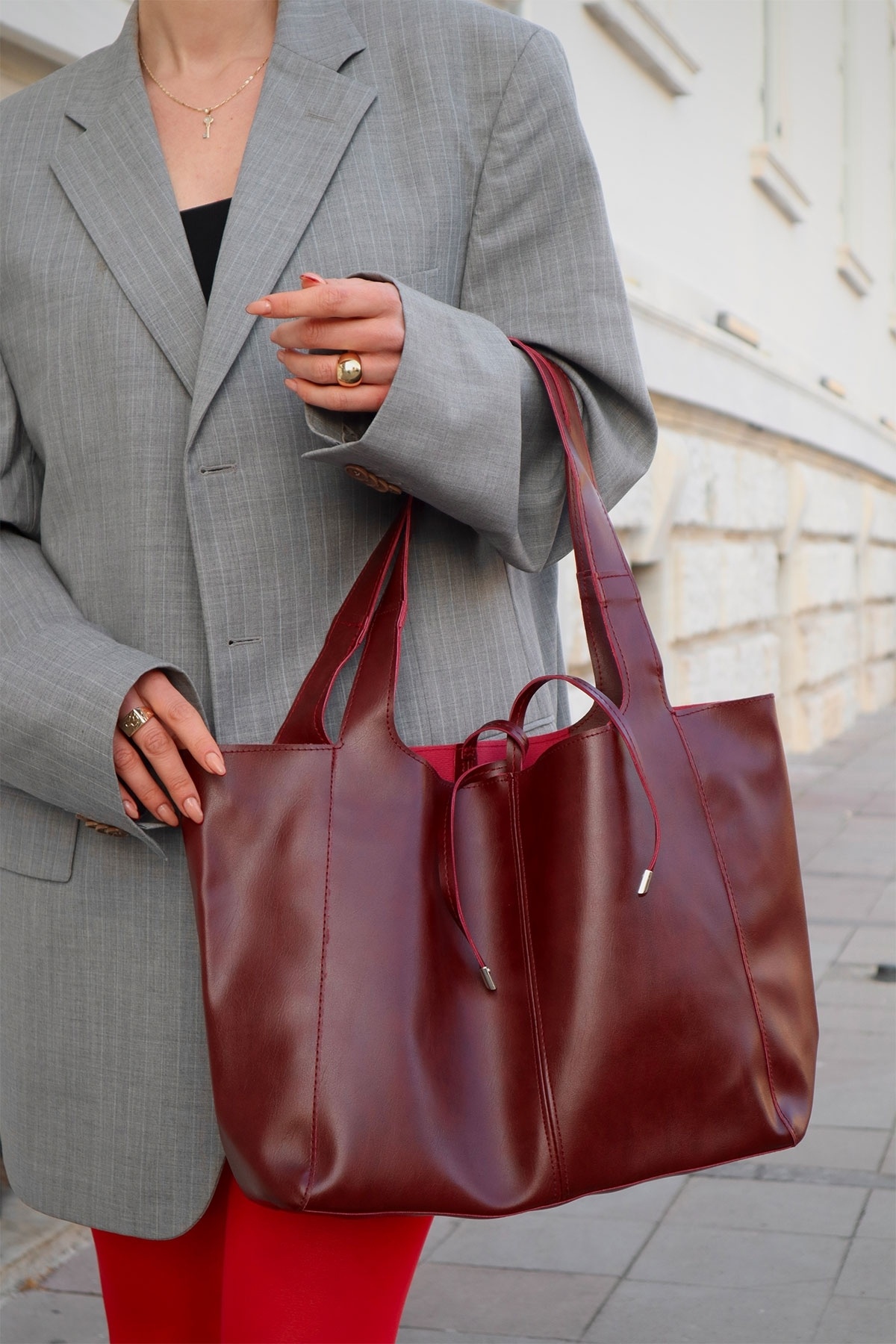 Bright Çift Saplı Bordo Mat Çanta Bright Çift Saplı Bordo Mat Çanta AURA-378 تک سایز
