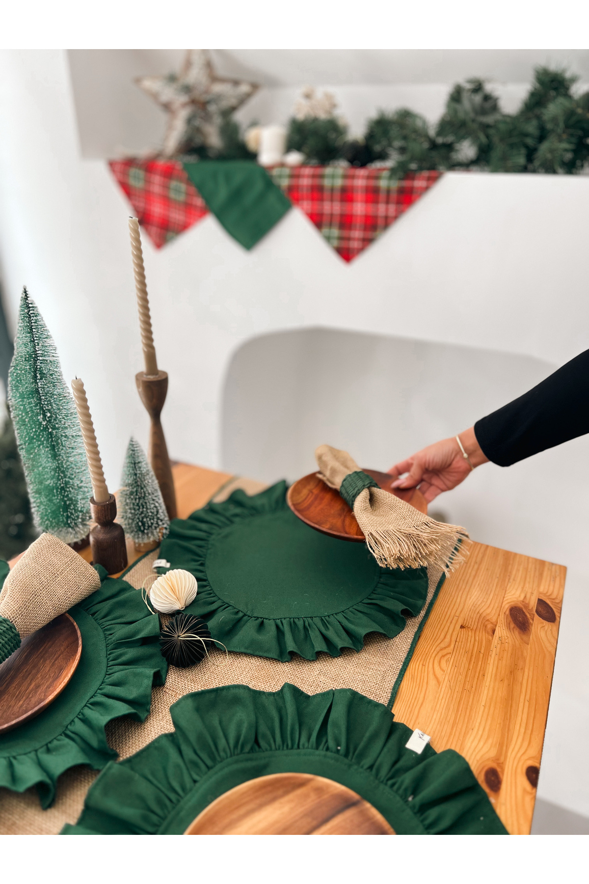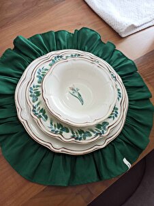 6Lı %100 Dak Keten Fırfır Detaylı Yuvarlak Amerikan Servis/ Supla YEŞİL 6Lı %100 Dak Keten Fırfır Detaylı Yuvarlak Amerikan Servis/ Supla YEŞİL KAİ054-1 تک سایز