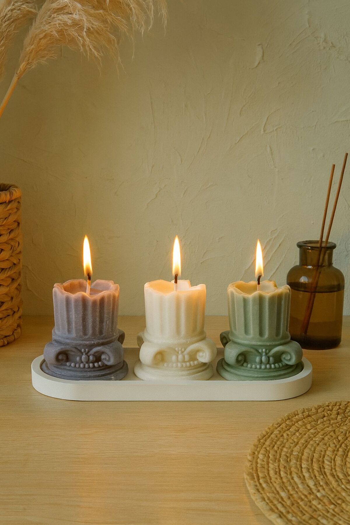 Dekoratif Tepside, 4'lü Set, Okyanus Kokulu Sütun Mum Dekoratif Tepside, 4'lü Set, Okyanus Kokulu Sütun Mum HRFM5 تک سایز