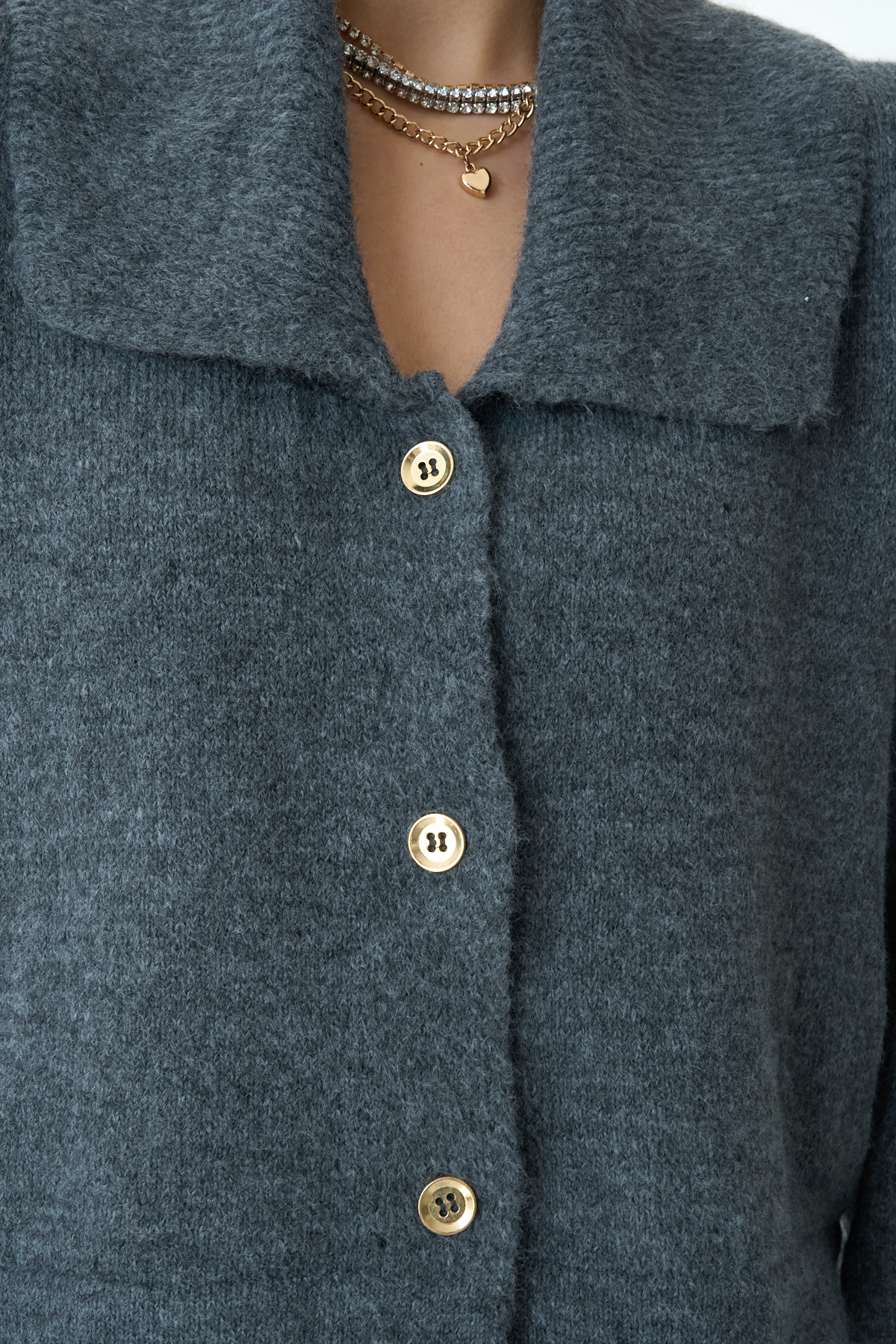 Kadın Gri Gömlek Yaka Düğmeli Kazak - Mini Etek 2'li Triko Takım Kadın Gri Gömlek Yaka Düğmeli Kazak - Mini Etek 2'li Triko Takım TT241049 Standart