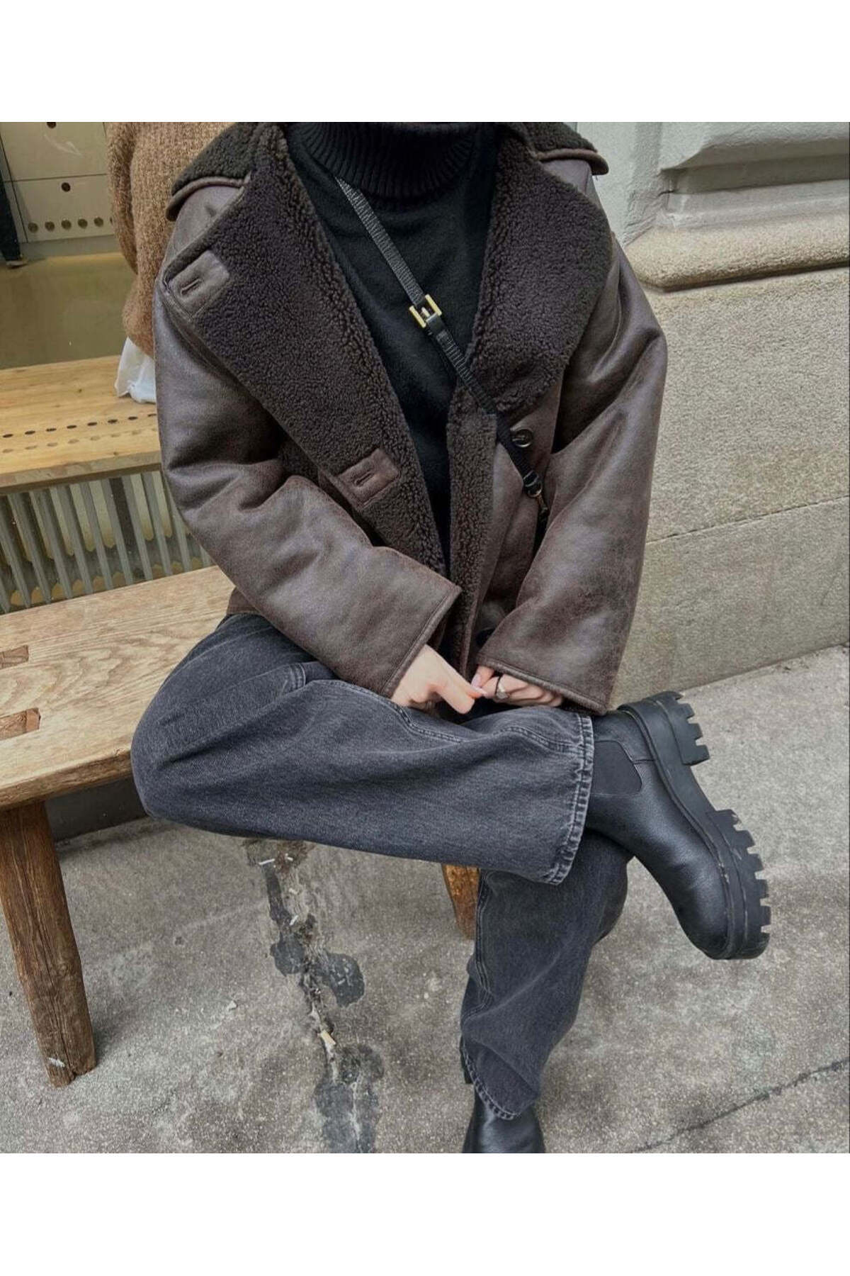 Çoban Düğmeli Peluş Lamine Deri Mont Çoban Düğmeli Peluş Lamine Deri Mont BR2492234 L