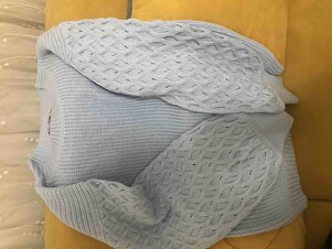 Kadın Bisiklet Yaka Selanik Örgü Kol Motifli Salaş Kol Bebe Mavisi Triko Kazak Kadın Bisiklet Yaka Selanik Örgü Kol Motifli Salaş Kol Bebe Mavisi Triko Kazak 22155 2XL