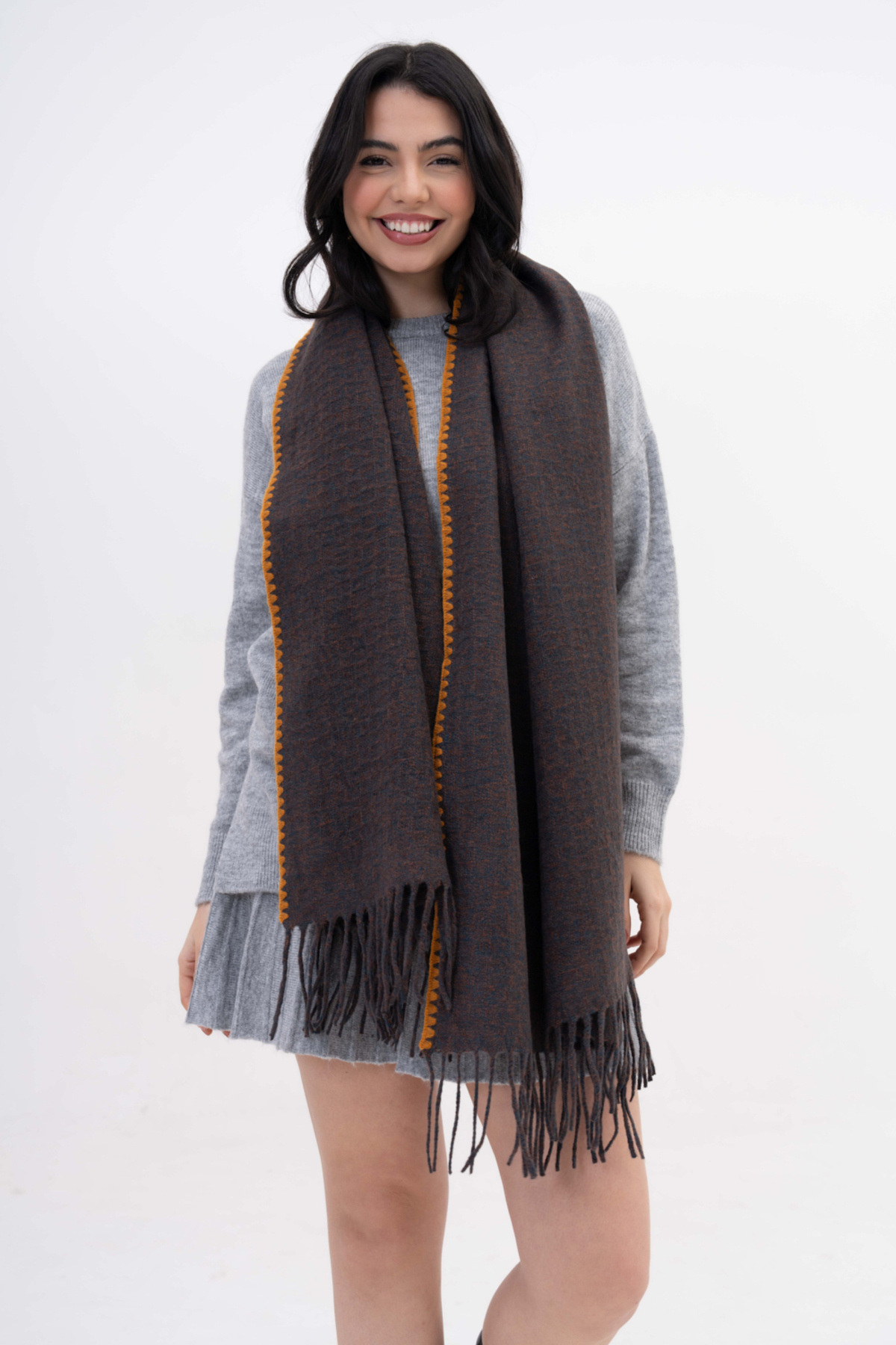 Çoban Dikiş Detaylı Kaşmir-Yün Karışımlı Atkı Çoban Dikiş Detaylı Kaşmir-Yün Karışımlı Atkı 1994 60 x 190