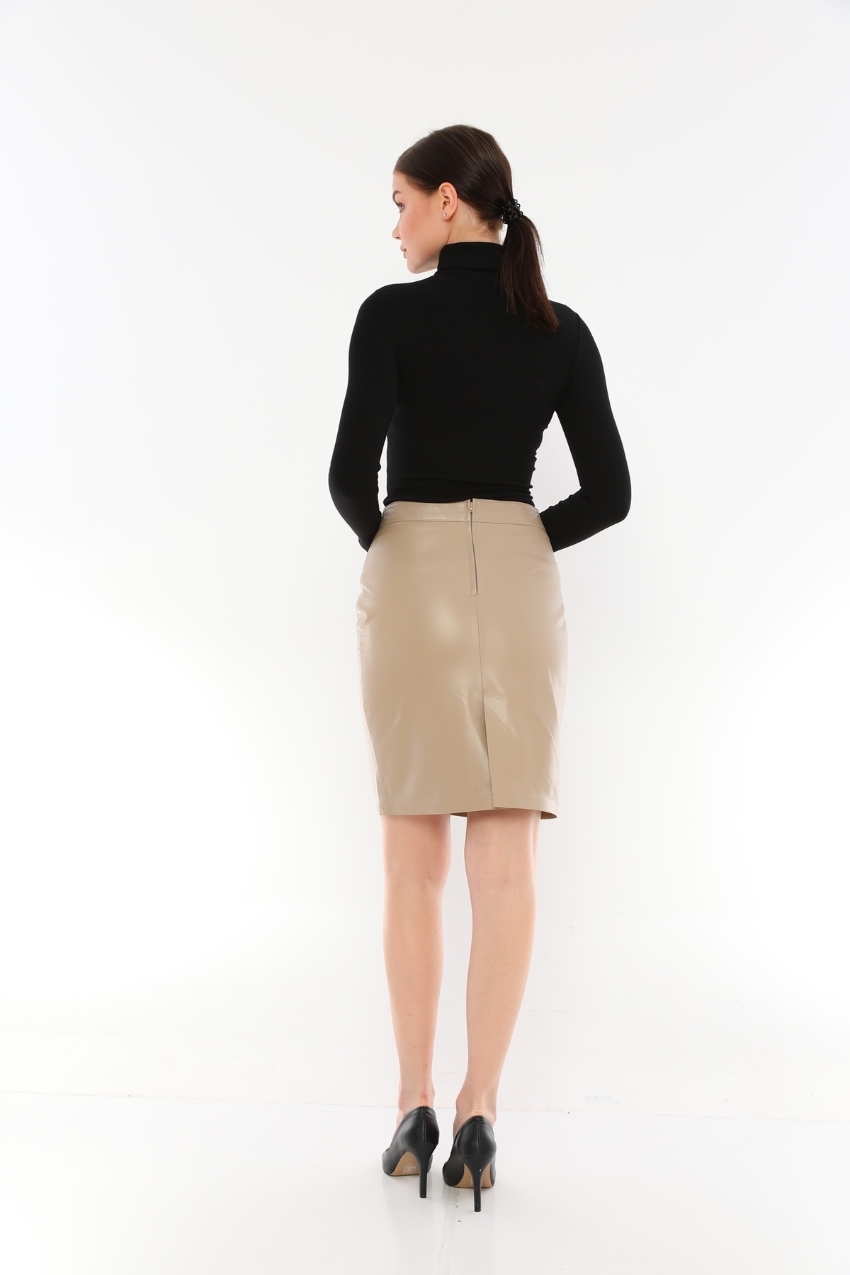 Kadın Kalem Bej Deri Etek - SK04 Kadın Kalem Bej Deri Etek - SK04 2XL