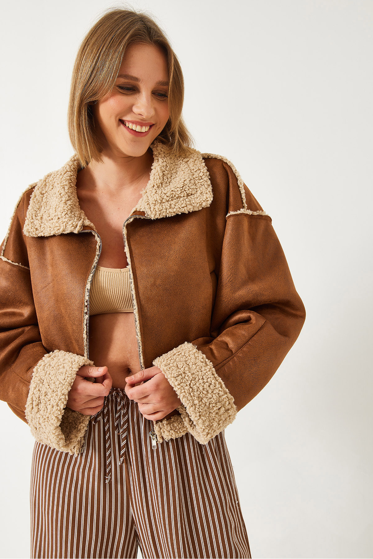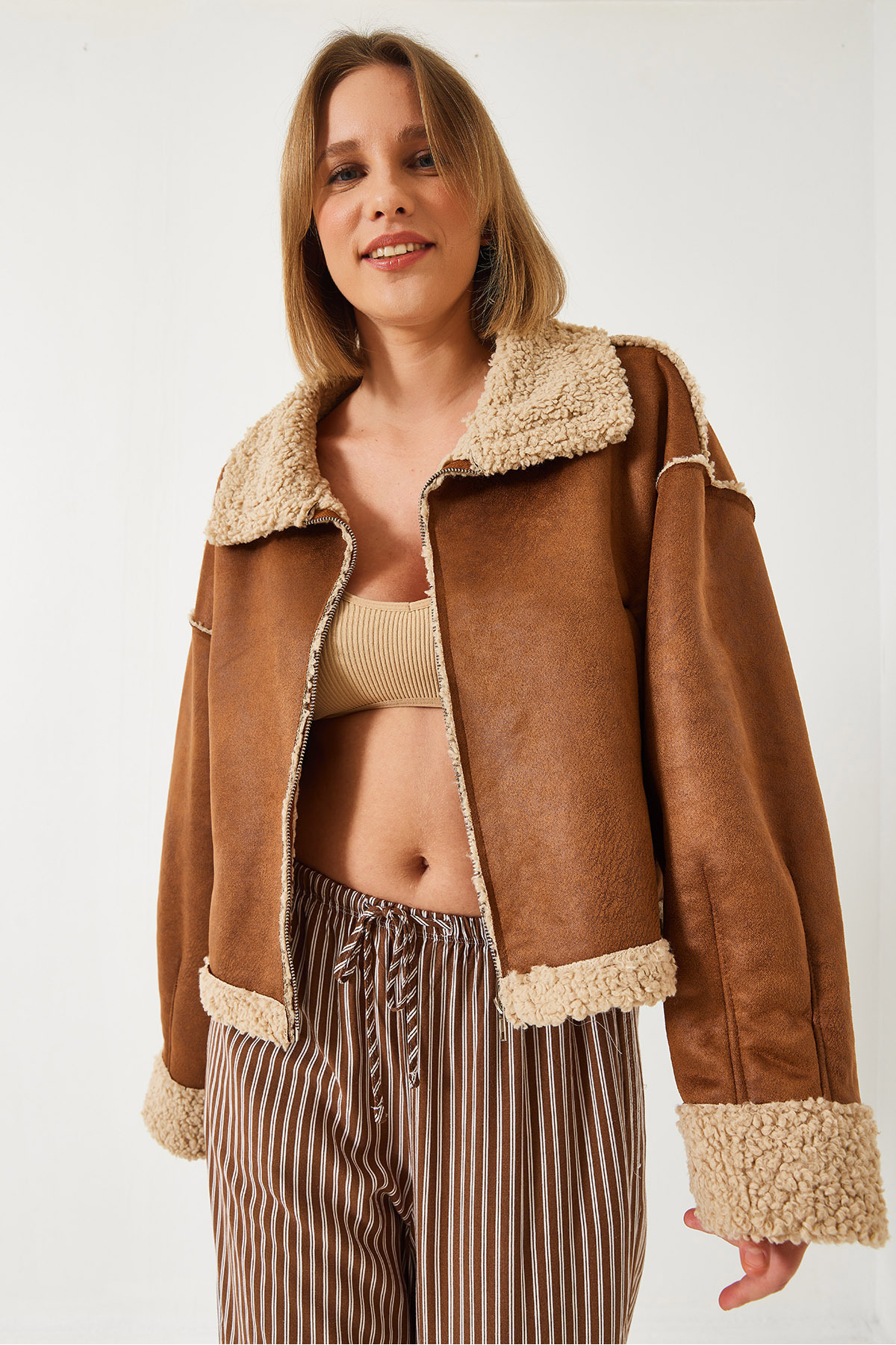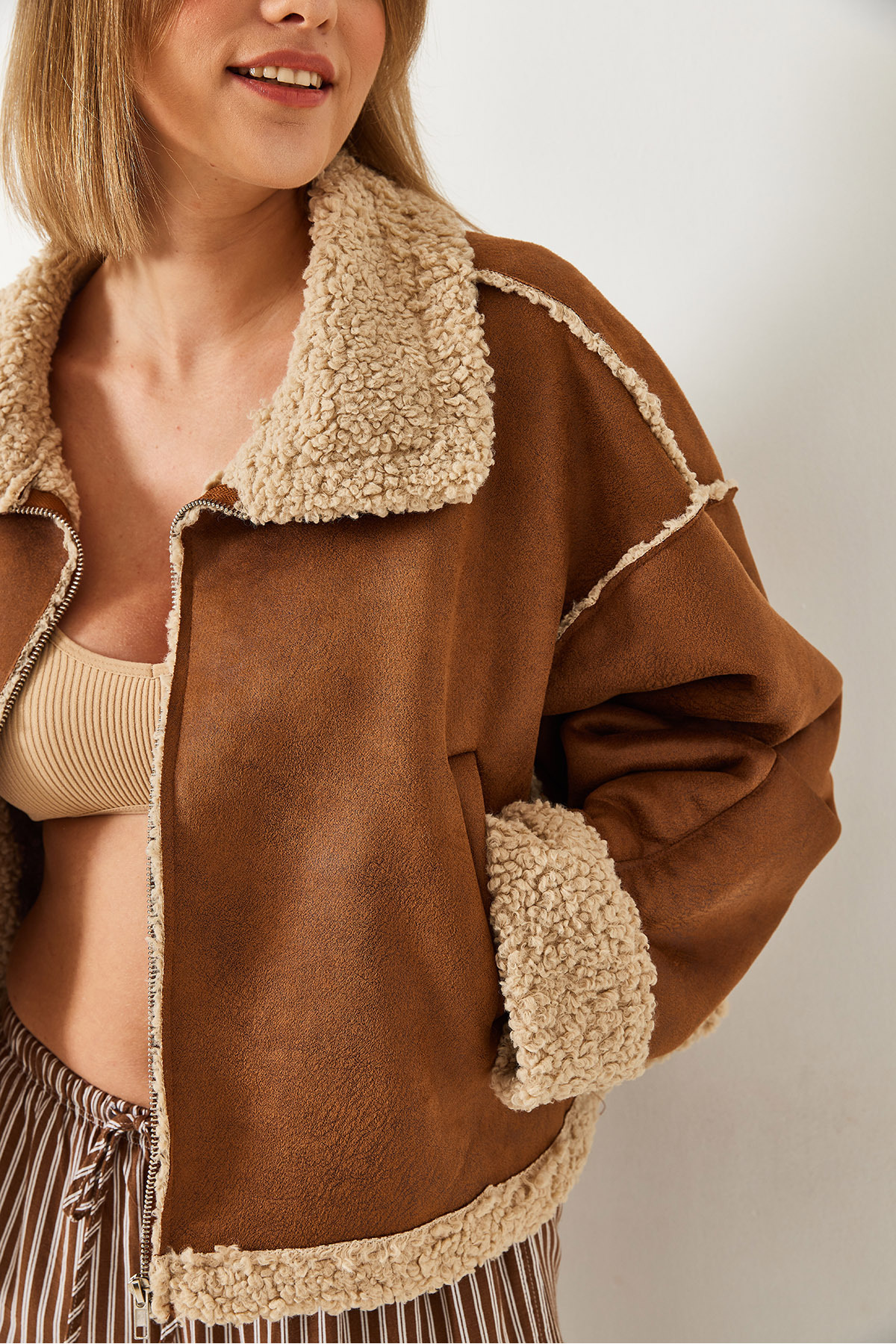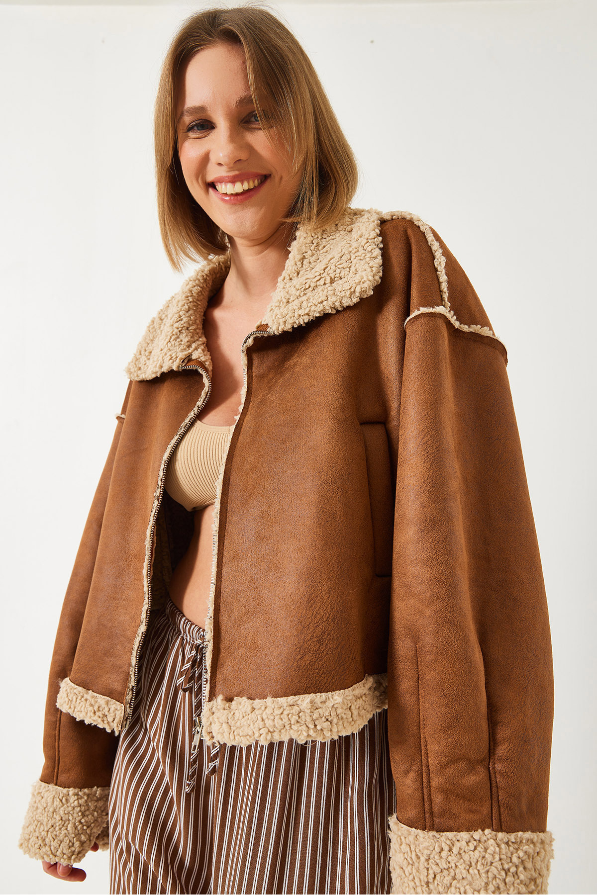 Kadın İçi Kürklü Kısa Ceket 20081 60351366 Kadın İçi Kürklü Kısa Ceket 20081 60351366 L
