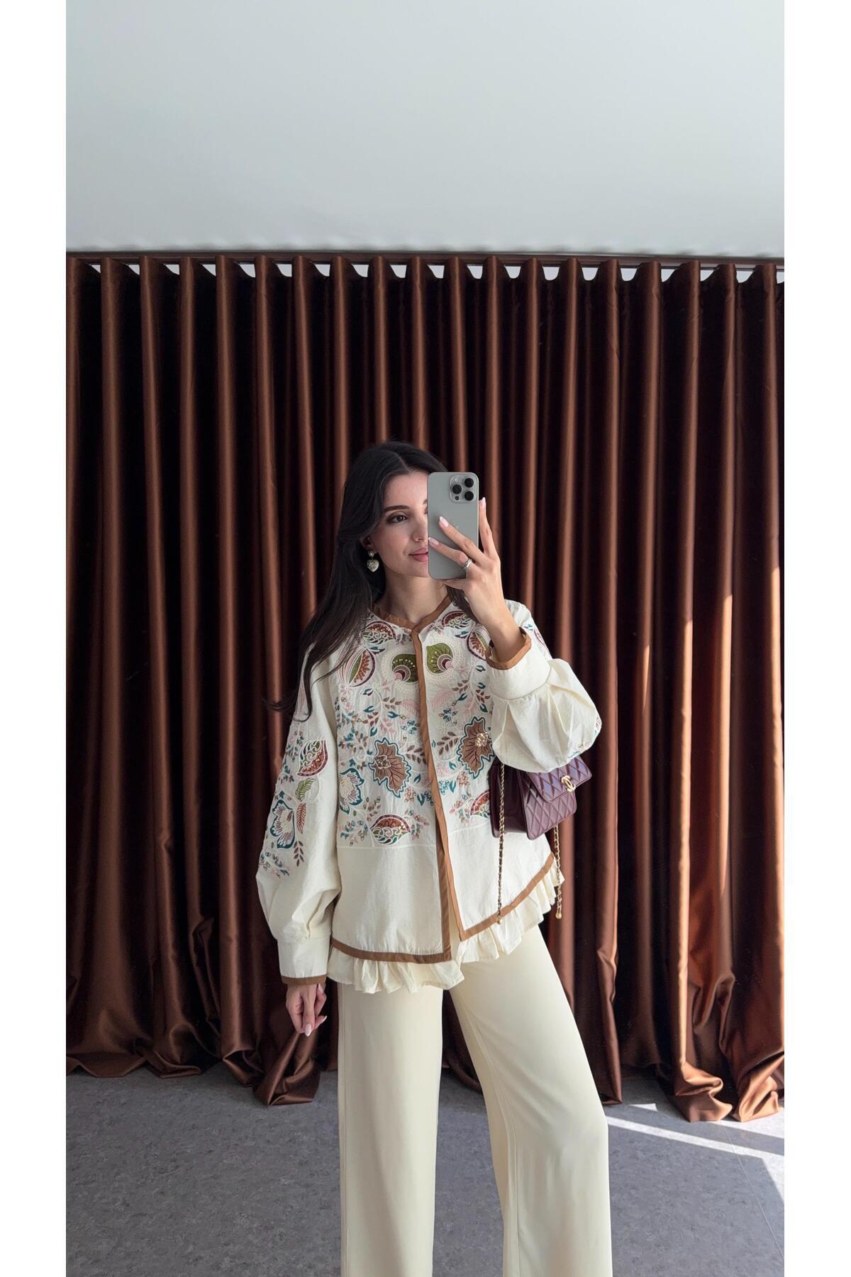 Ekru Triko Ceket Ekru Triko Ceket 10428 تک سایز