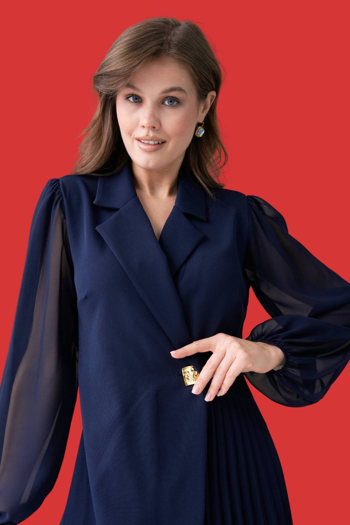Ceket Yaka Önden Bağlama Detaylı Tüvit Şanel Kumaş Şifon Kollu Kadın Elbise 030 Ceket Yaka Önden Bağlama Detaylı Tüvit Şanel Kumaş Şifon Kollu Kadın Elbise 030 ZSH-STP-030 XL