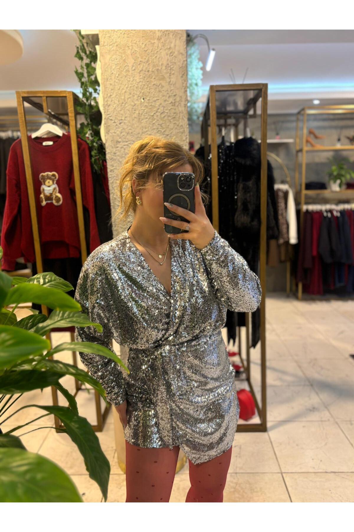 Gümüş Pul Payet Elbise Gümüş Pul Payet Elbise 5676555 M