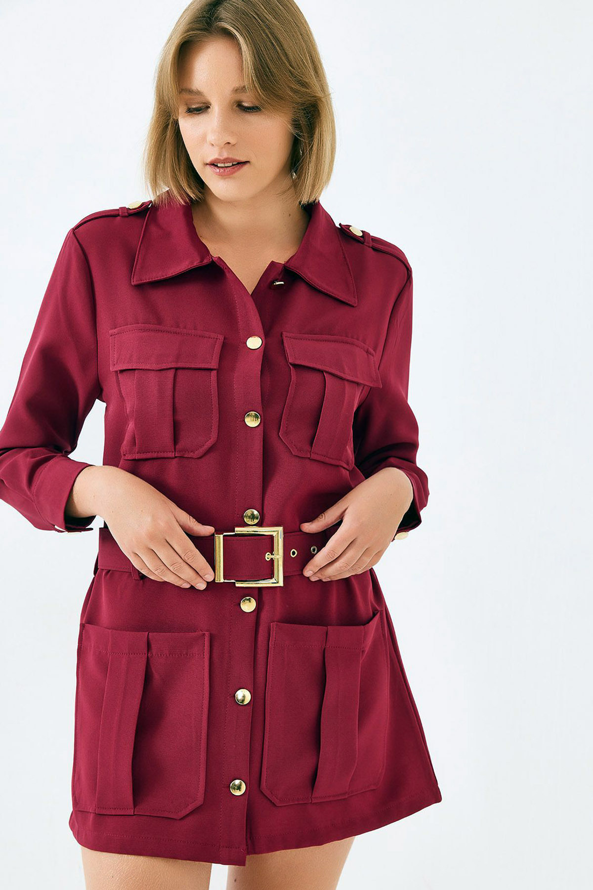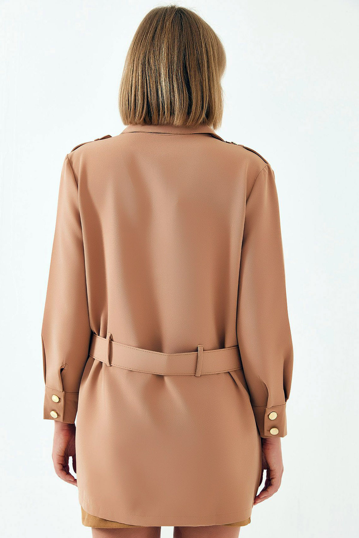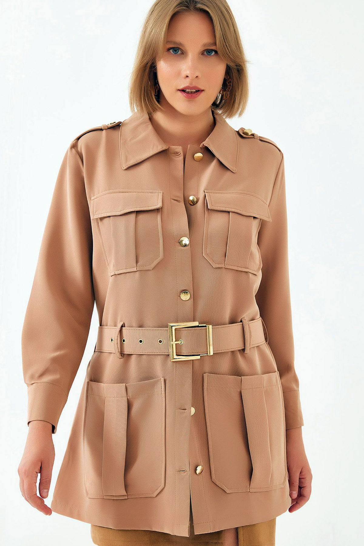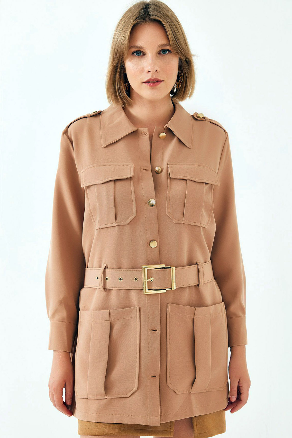 Relaxed Fit Dört Cepli Rahat Gömlek Yaka Kemerli Uzun Kollu Düğme Kapama Safari Ceket Relaxed Fit Dört Cepli Rahat Gömlek Yaka Kemerli Uzun Kollu Düğme Kapama Safari Ceket ODRP-2080 40