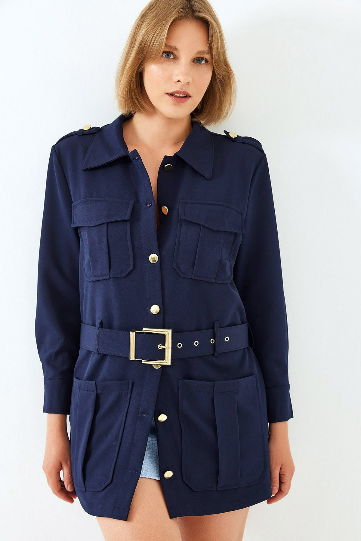 Relaxed Fit Dört Cepli Rahat Gömlek Yaka Kemerli Uzun Kollu Düğme Kapama Safari Ceket Relaxed Fit Dört Cepli Rahat Gömlek Yaka Kemerli Uzun Kollu Düğme Kapama Safari Ceket ODRP-2080 40