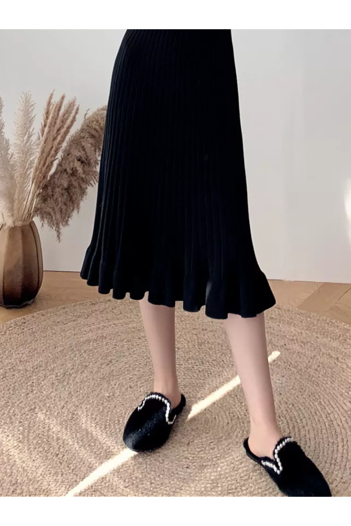 İnci Detaylı Eteği Fırfırlı Fitilli Midi Boy Triko Elbise 105 Cm - XS-S-M Bedenler İçin Uygundur İnci Detaylı Eteği Fırfırlı Fitilli Midi Boy Triko Elbise 105 Cm - XS-S-M Bedenler İçin Uygundur MXXN8831 Standart