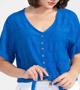 Kadın Düğme Detay V Yaka Bürümcük Bluz / Mavi ve Siyah Kadın Düğme Detay V Yaka Bürümcük Bluz / Mavi ve Siyah 1242-23125-F6 XL