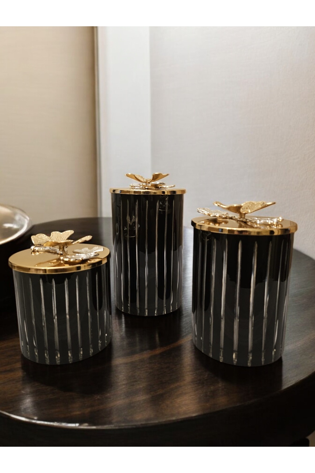 3'lü Çizgili Dekoratif Kavanoz Seti Siyah 3'lü Çizgili Dekoratif Kavanoz Seti Siyah 01118-R1 تک سایز