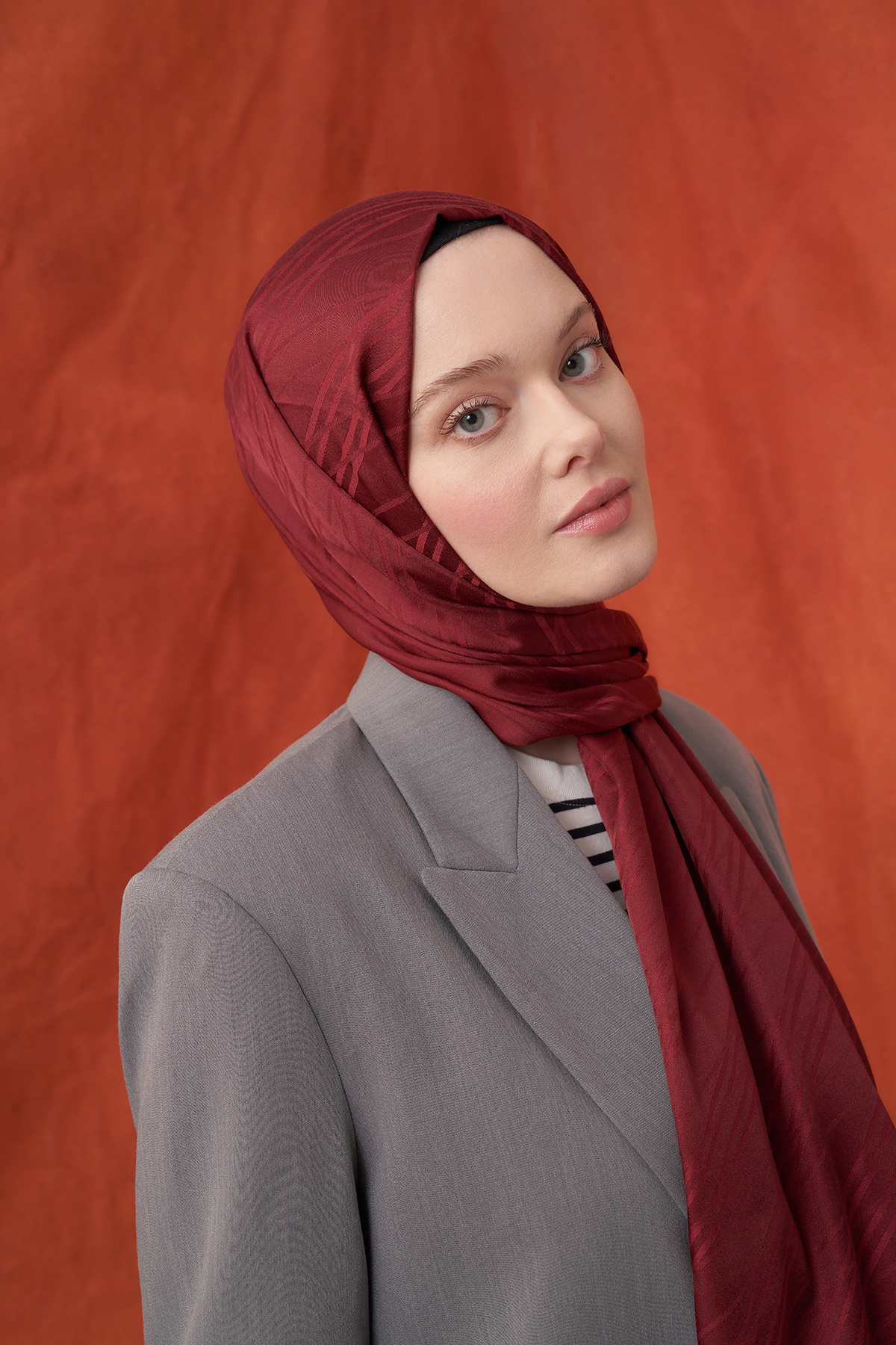 İTALYAN JAKAR ŞERİT DESEN ŞAL - BORDO İTALYAN JAKAR ŞERİT DESEN ŞAL - BORDO 3085 تک سایز