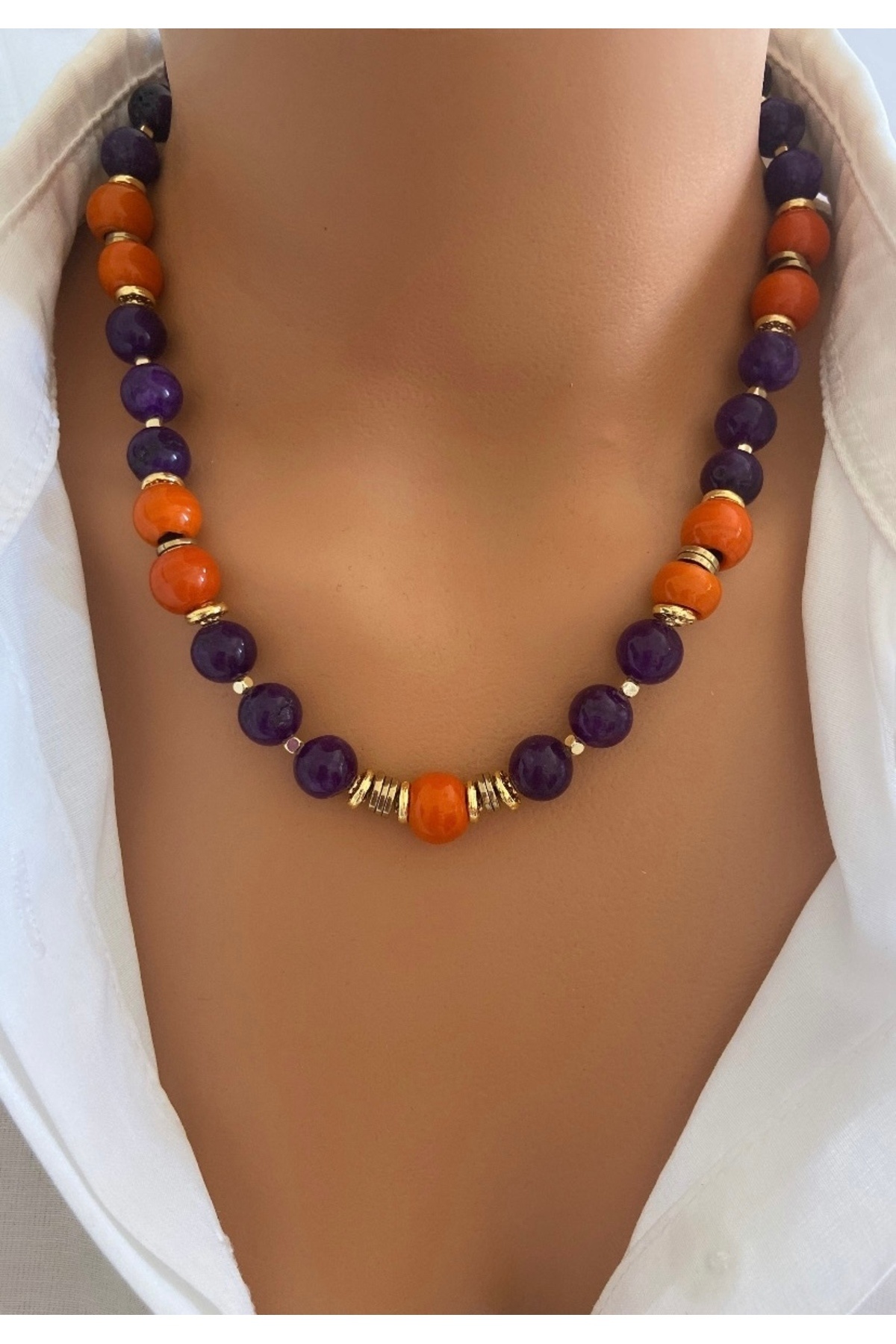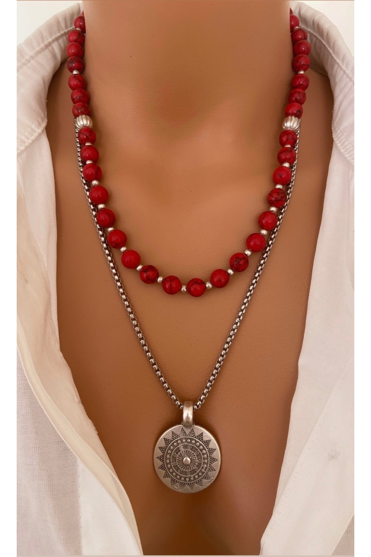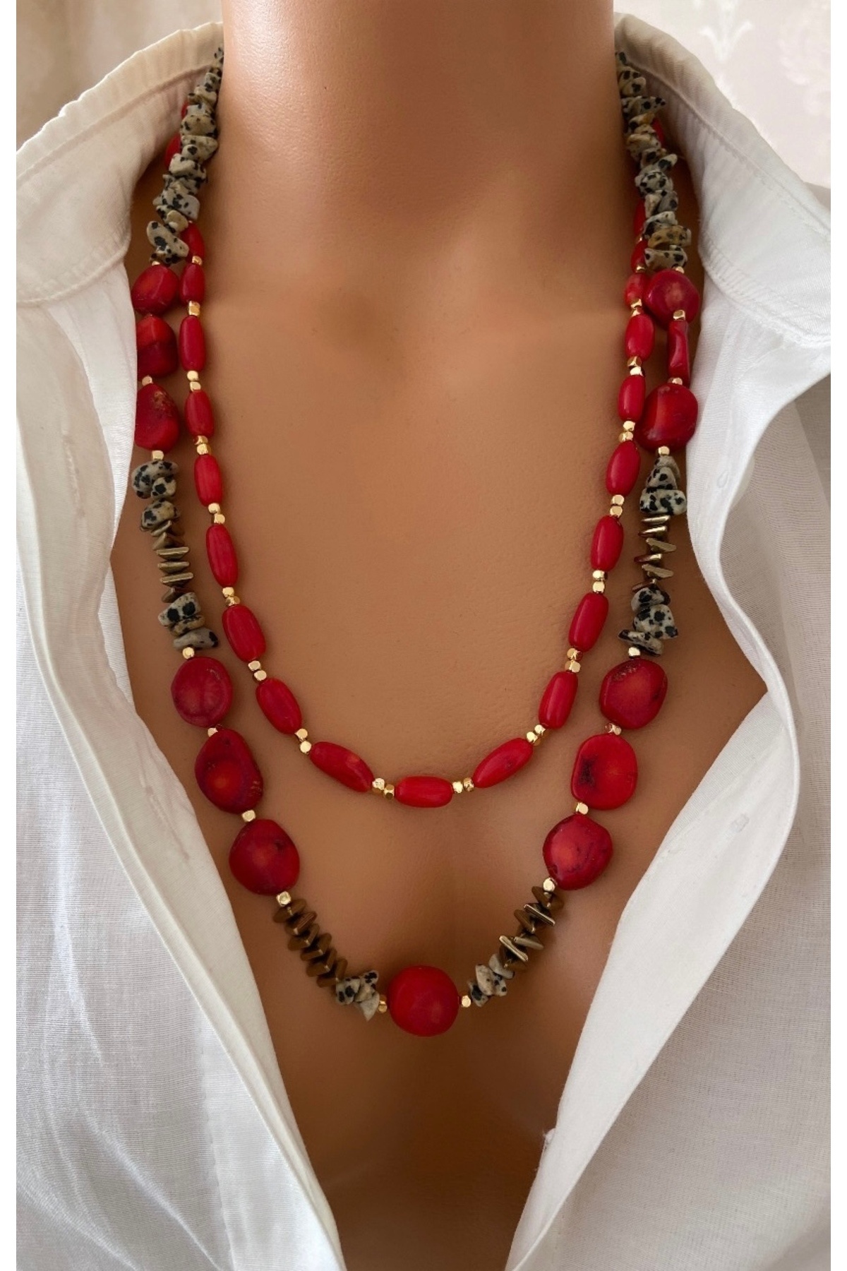(İKİ KOLYE) Doğal Taş Kırmızı Gerçek Silindir Ve Arpa Mercan Taşı Altın Kaplama Tasarım Kadın Kolye (İKİ KOLYE) Doğal Taş Kırmızı Gerçek Silindir Ve Arpa Mercan Taşı Altın Kaplama Tasarım Kadın Kolye ikilimercanjasperkolye M