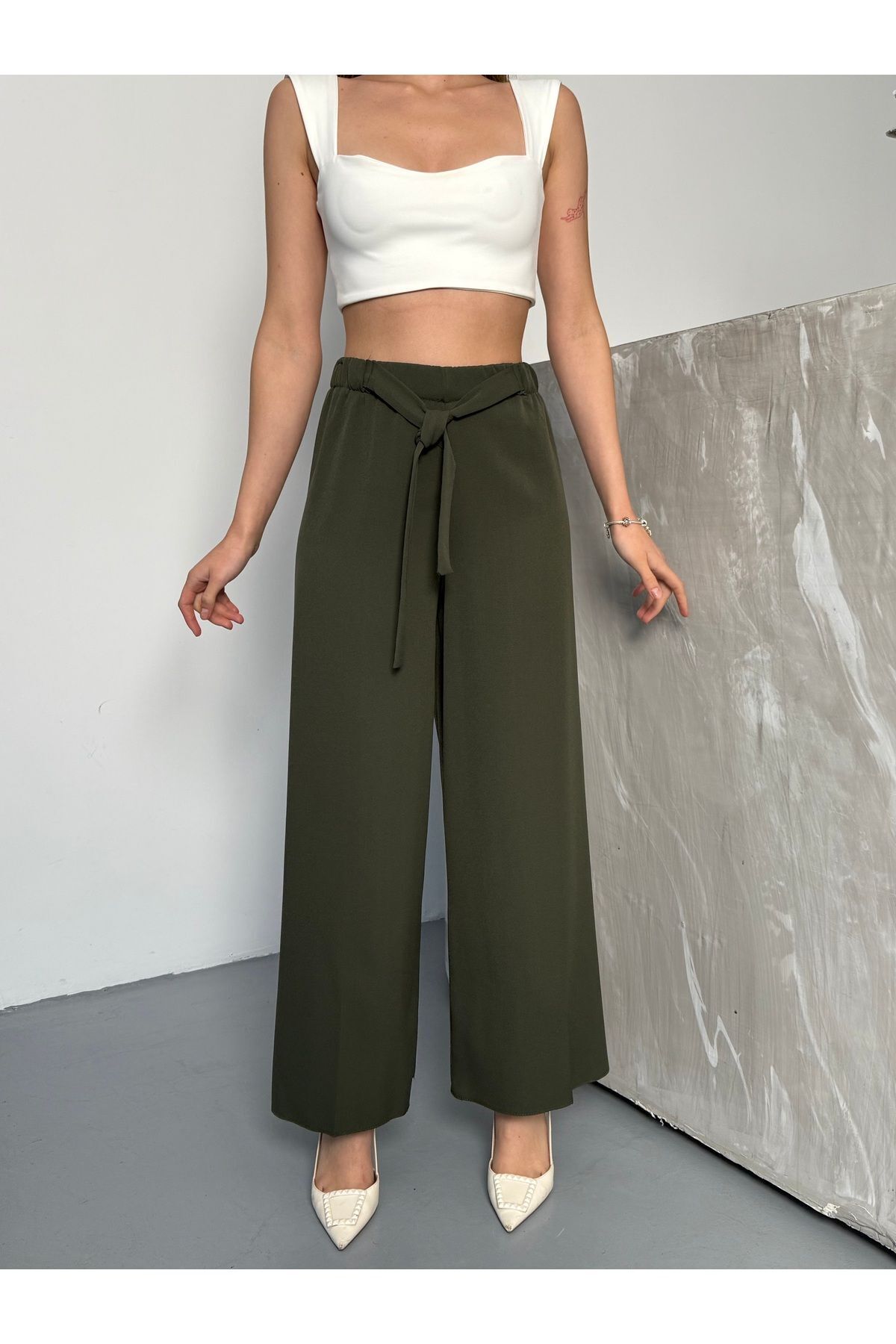Gri Line Likralı Cırt Kapama Palazzo Kadın Pantolon Gri Line Likralı Cırt Kapama Palazzo Kadın Pantolon PNT.0010 XL