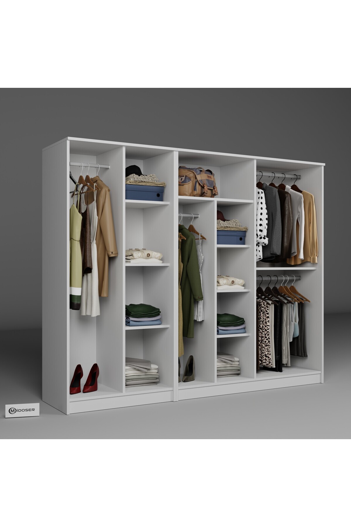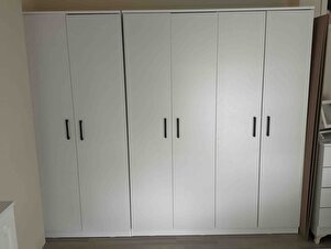 Kardelen Serisi Mat Beyaz 6 Kapaklı 9 Raflı Elbise Dolabı 220 Cm - Gardırop Seti Kardelen Serisi Mat Beyaz 6 Kapaklı 9 Raflı Elbise Dolabı 220 Cm - Gardırop Seti 1600-105 180 cm