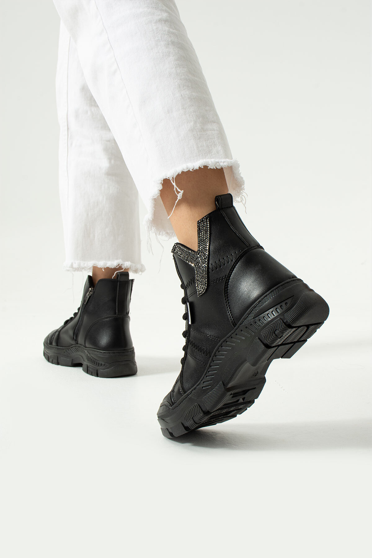 Siyah Taş Detaylı Bağcıklı Bot Siyah Taş Detaylı Bağcıklı Bot TSL100 40