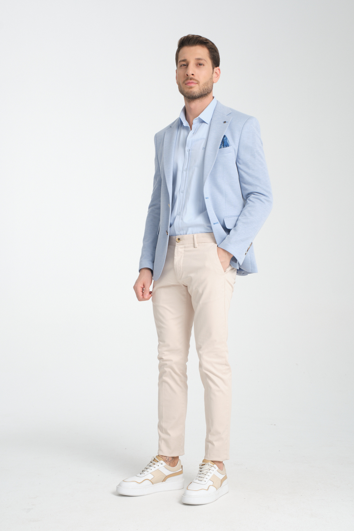 Buz Mavi Modern Erkek Blazer Mono Yaka Spor Ceket Örme Buz Mavi Modern Erkek Blazer Mono Yaka Spor Ceket Örme 3860 MANUES 58/6