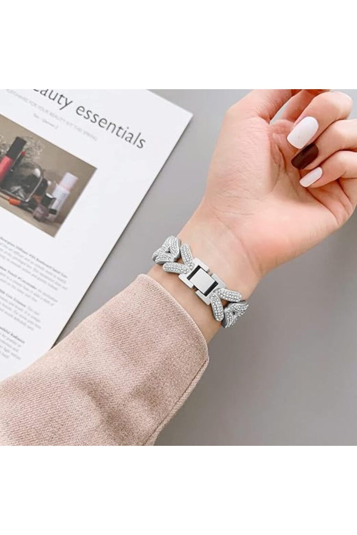 Apple Watch 41/40/38 Mm Series 10(42MM)/9/8/7/SE/6/5/4/3/2/1 Uyumlu Metal Örgü Parlak Taşlı Kordon Apple Watch 41/40/38 Mm Series 10(42MM)/9/8/7/SE/6/5/4/3/2/1 Uyumlu Metal Örgü Parlak Taşlı Kordon BBX-AZN-METTAŞÖRGK38 تک سایز