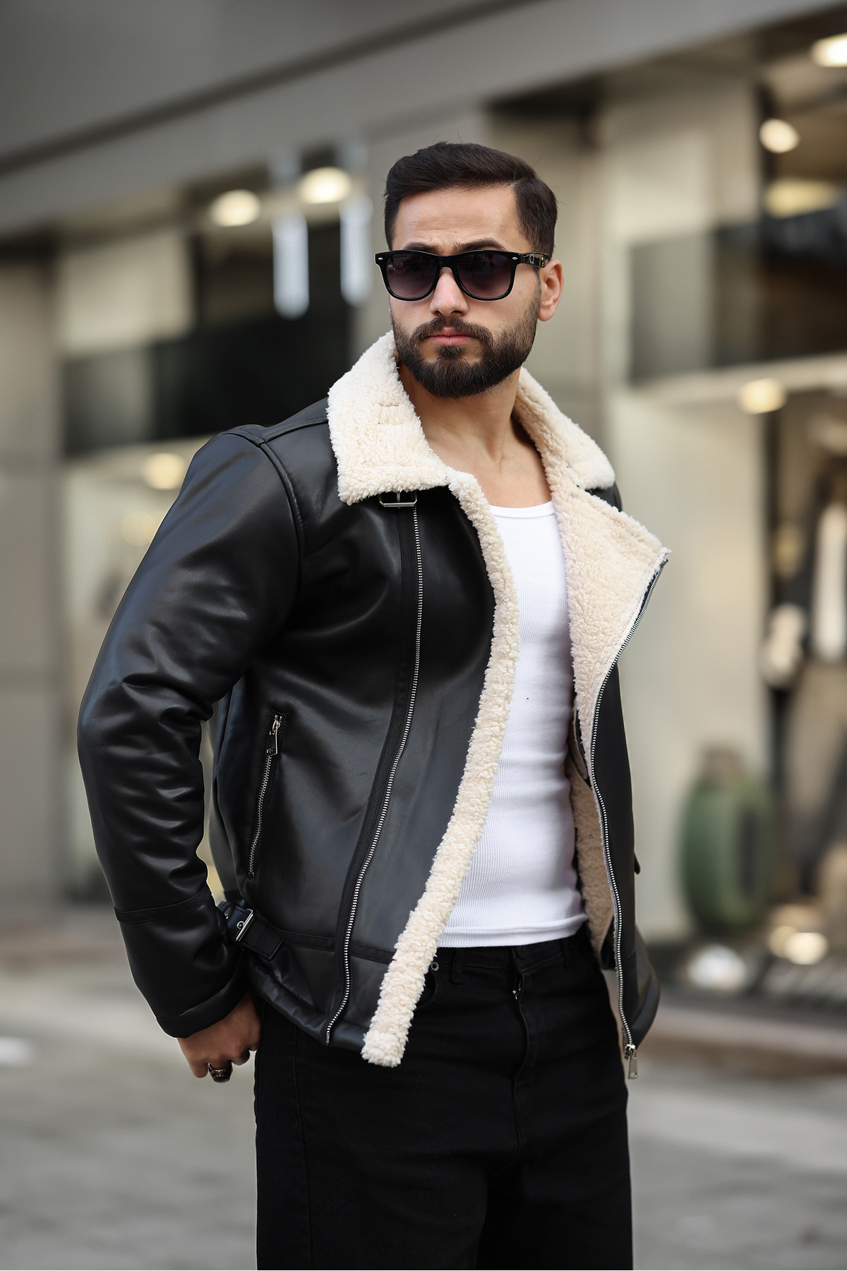 Erkek Kuzey Deri Ceket Kışlık Siyah deri ceket Erkek Kuzey Deri Ceket Kışlık Siyah deri ceket 68KUZEYDERİİ 2XL