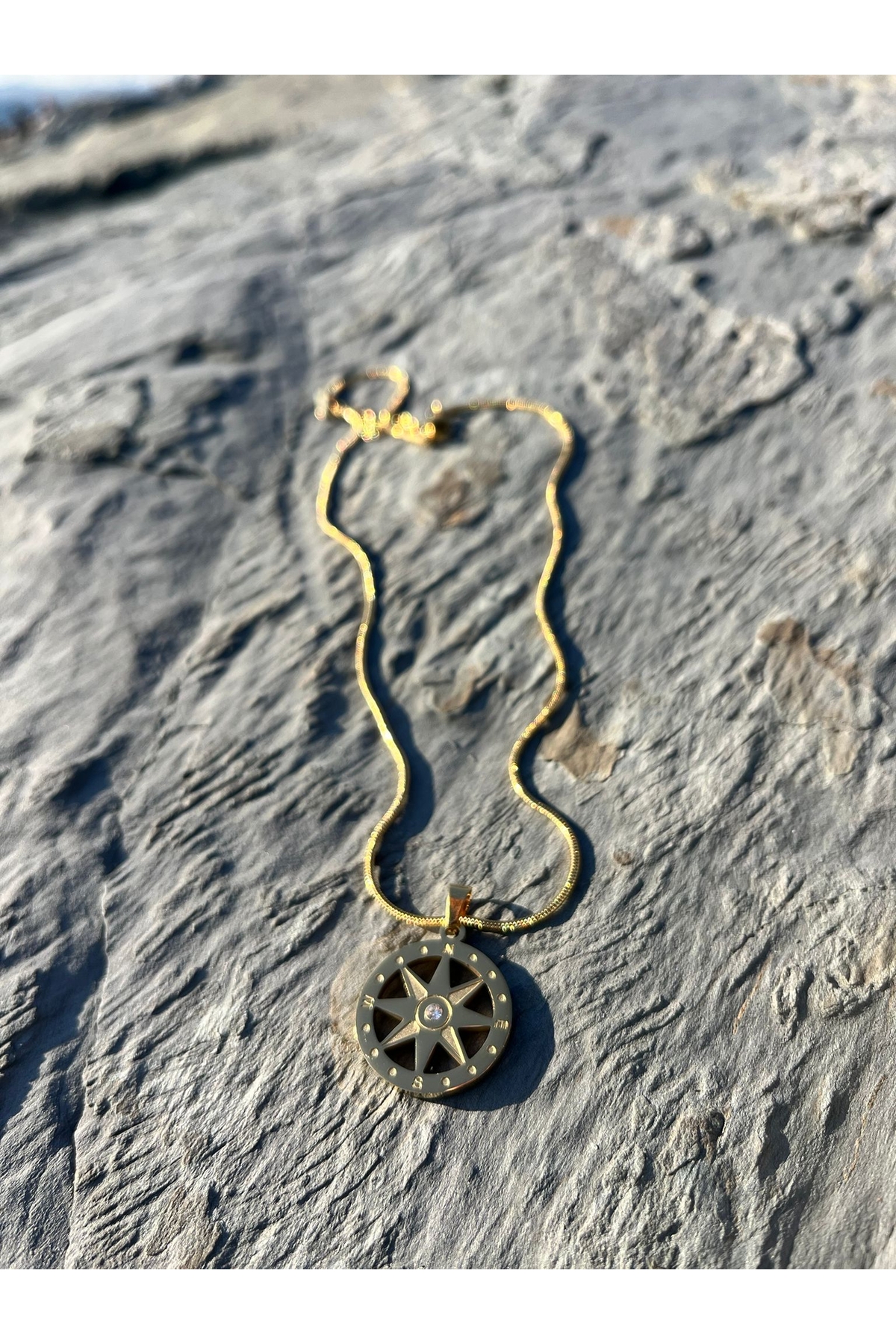 14K Altın Kaplama Siyah Mineli Çelik Pusula Kolye 14K Altın Kaplama Siyah Mineli Çelik Pusula Kolye TYCD6462EC726E5310 45 cm