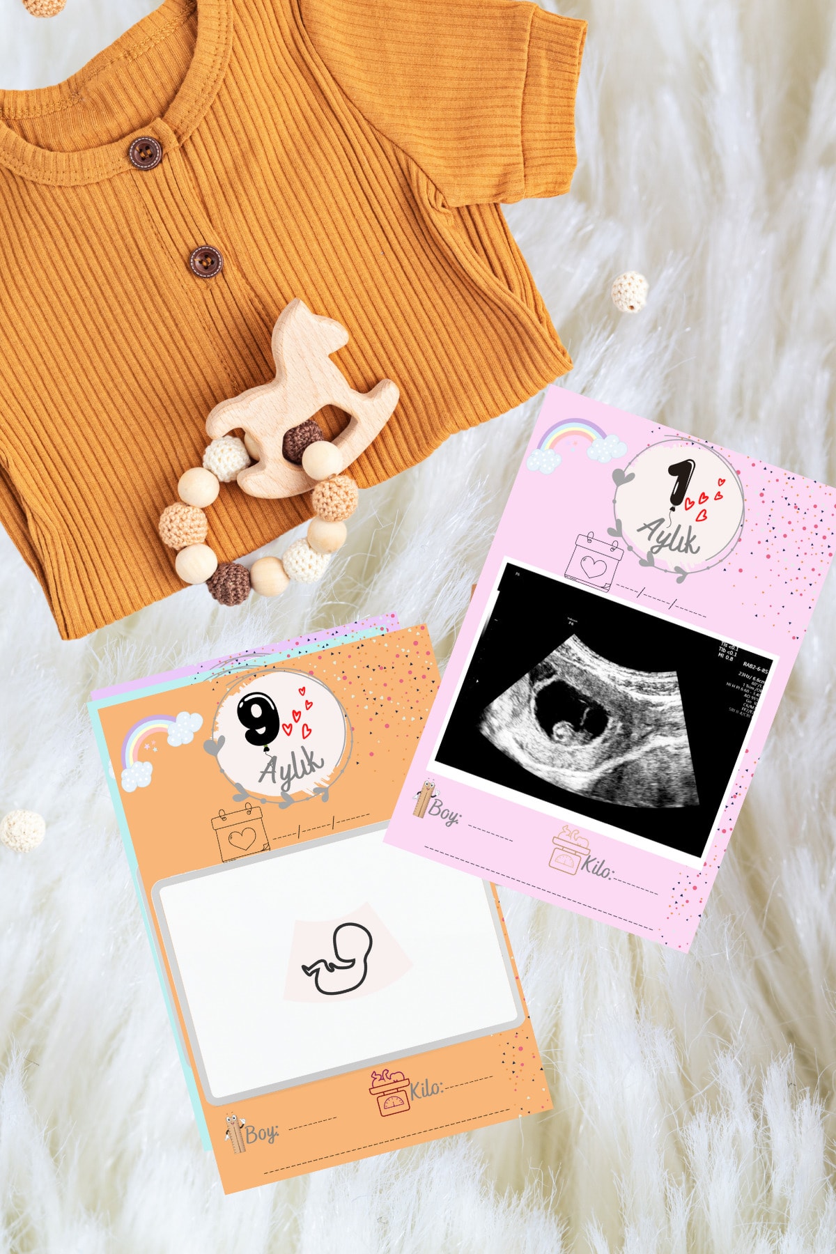 Hamile Ultrason Anı Kartları 12 Adet Hamilelik Gebelik Aylık Fotoğraf Çekim Kartı Hamileye Hediye