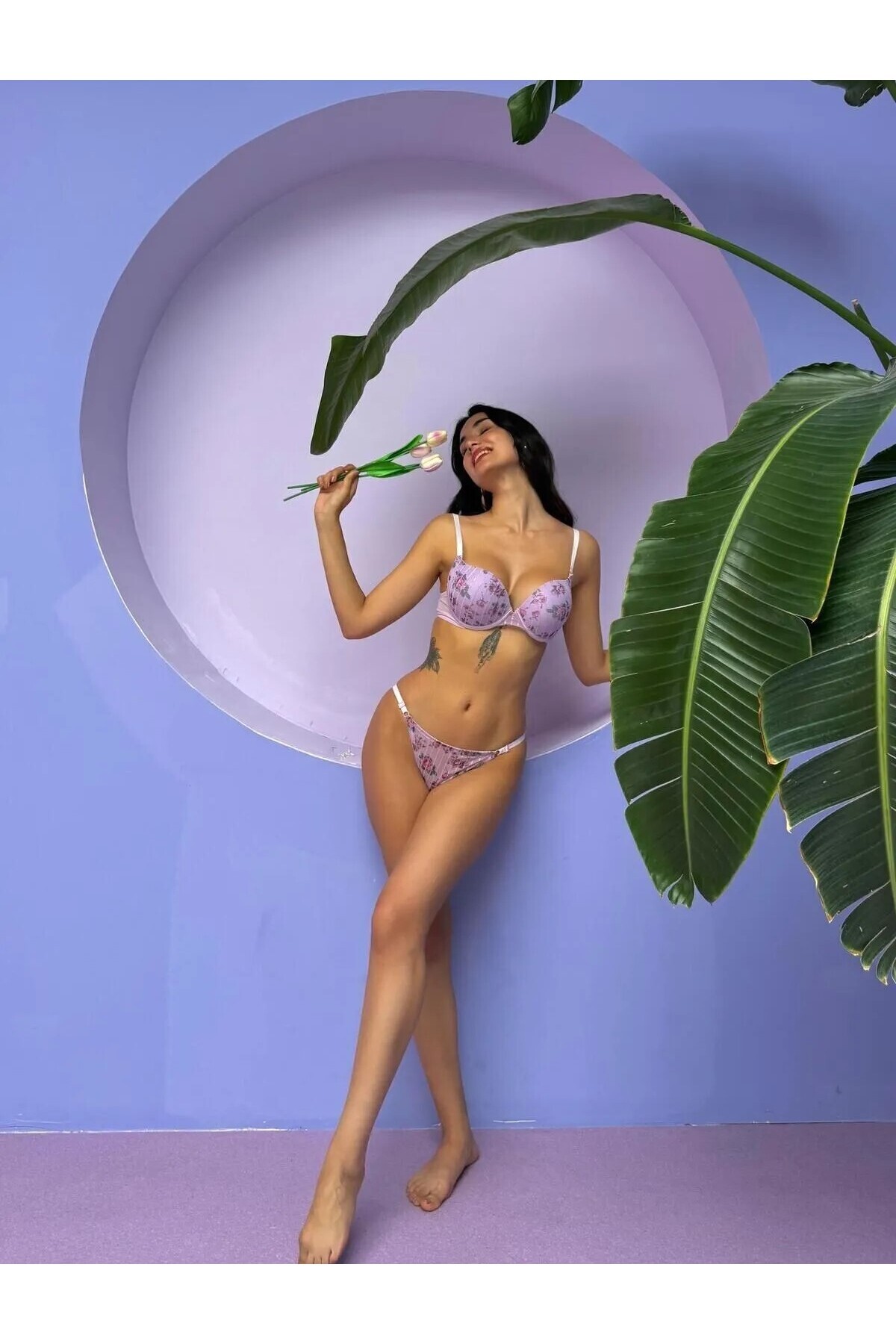 Simli Çiçek Desenli Destekli Mor Sütyen Külot Takımı Simli Çiçek Desenli Destekli Mor Sütyen Külot Takımı 683T 90B