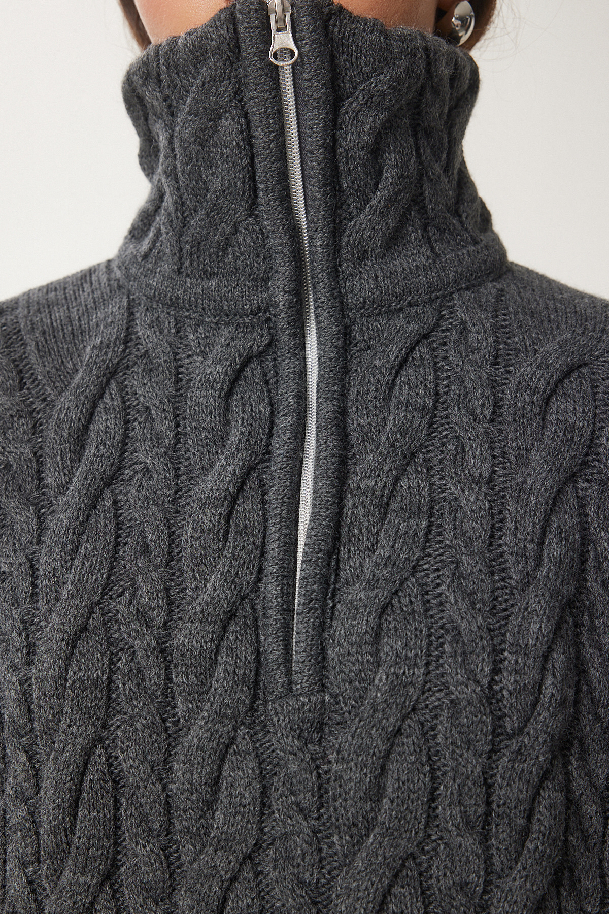 Fermuarlı Dik Yaka Kalın Oversize Triko Kazak ANTRASİT LUS0063 Fermuarlı Dik Yaka Kalın Oversize Triko Kazak ANTRASİT LUS0063 تک سایز