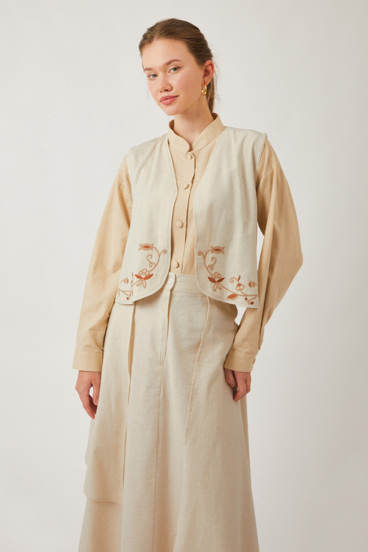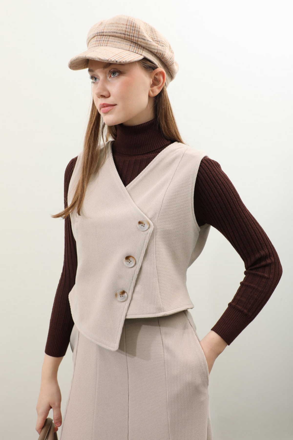 Kruvaze Yelekli Takım Krem Kruvaze Yelekli Takım Krem 6401 2