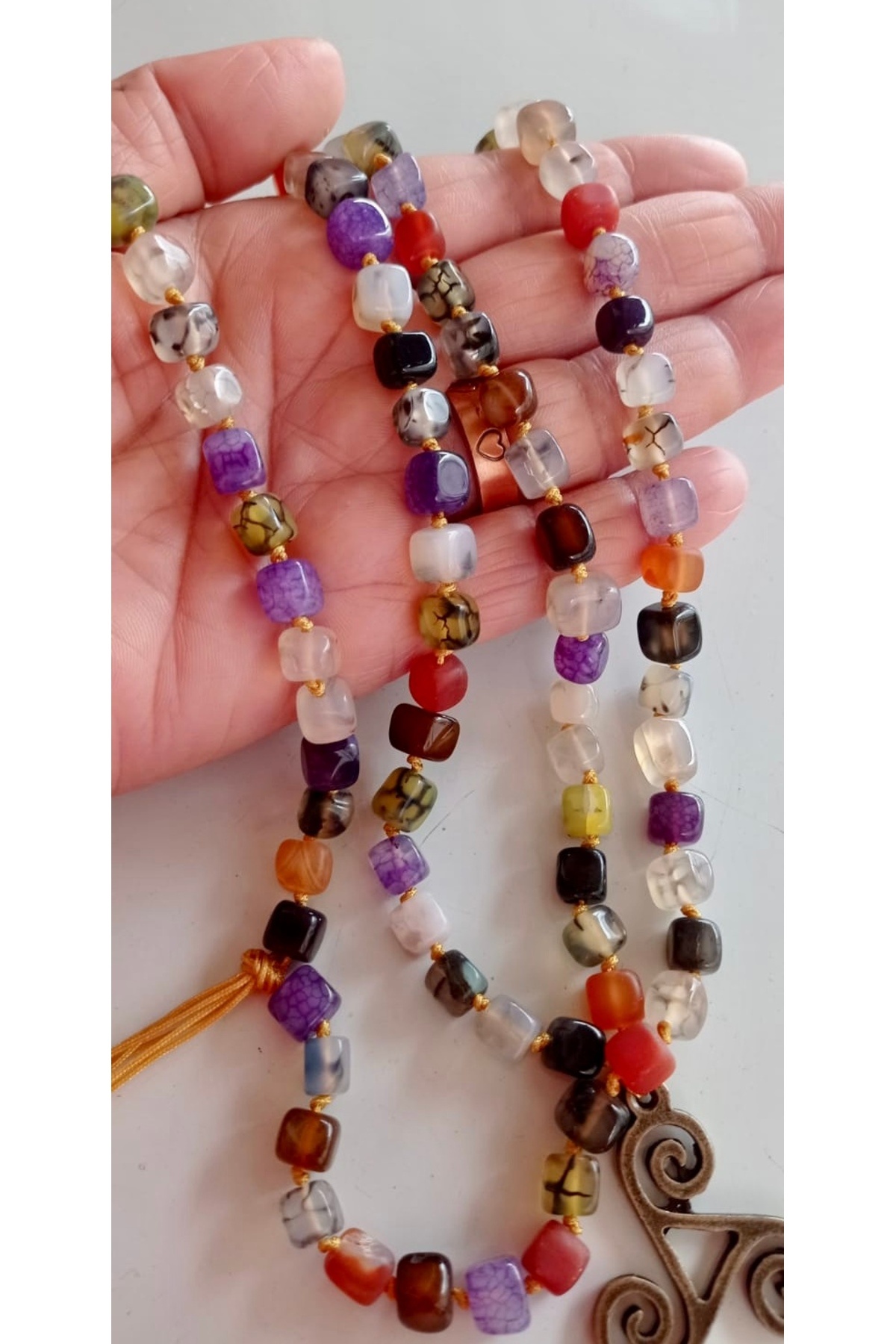 Sonsuzluk uçlu Okyanus Akik Kare Düğümlü 108 Mala Kolye Sonsuzluk uçlu Okyanus Akik Kare Düğümlü 108 Mala Kolye 108akik L